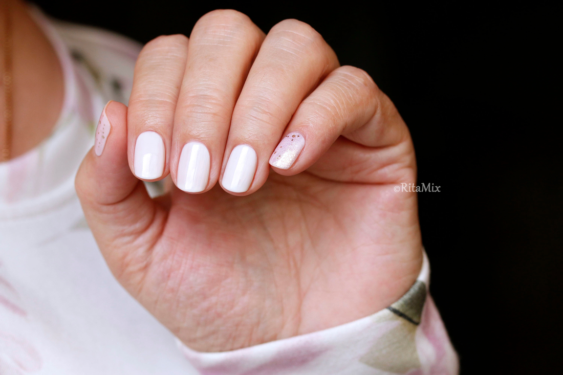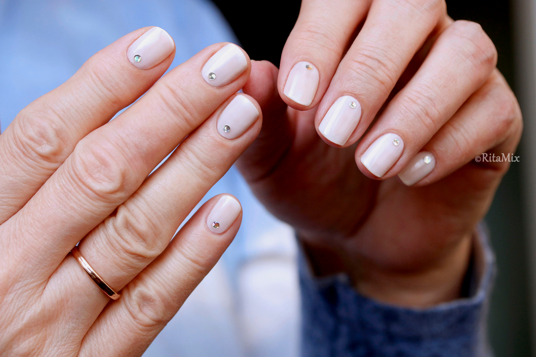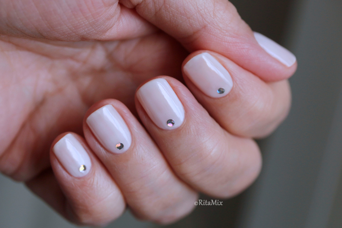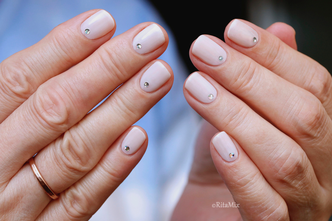 В маникюре, который я вам покажу, он как раз нанесен в три, но тонких слоя, а декор выполнен с помощью топа Anny # 456 Blush Champagne.