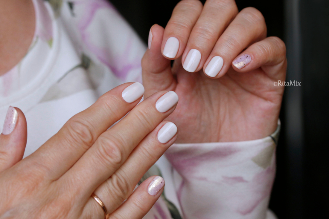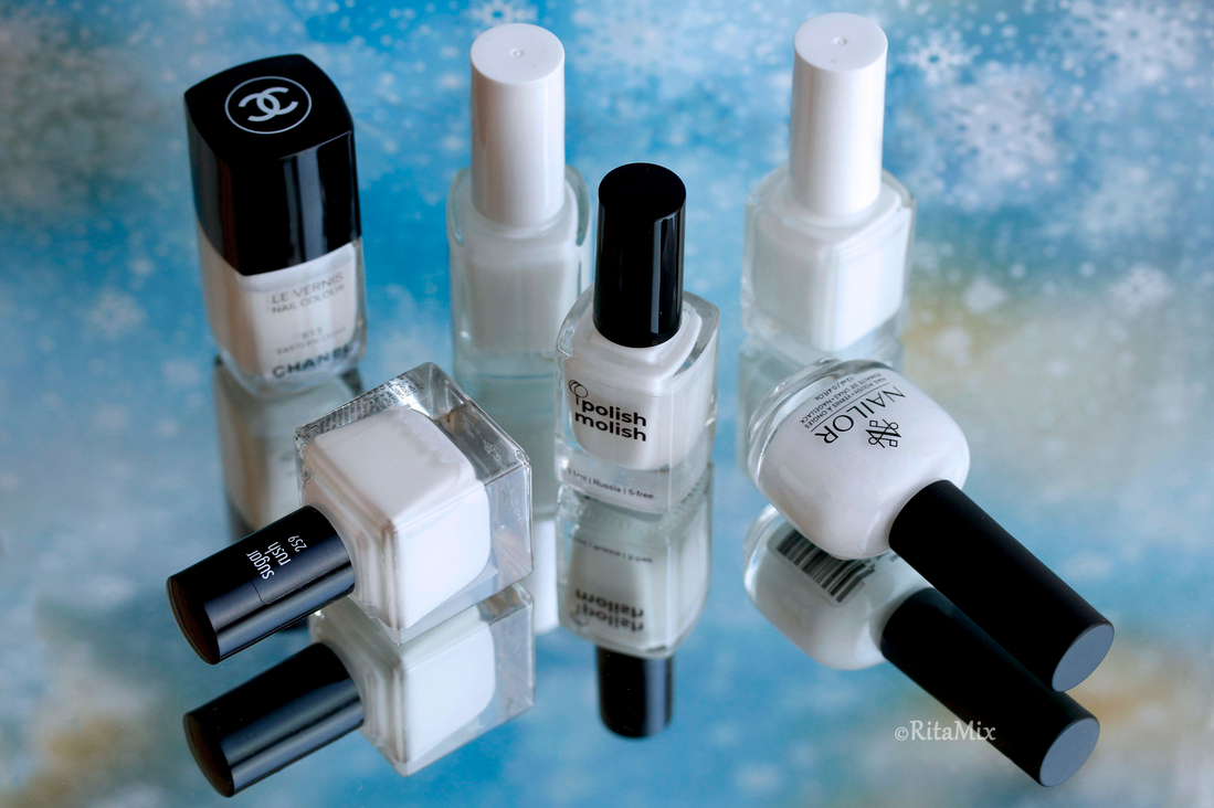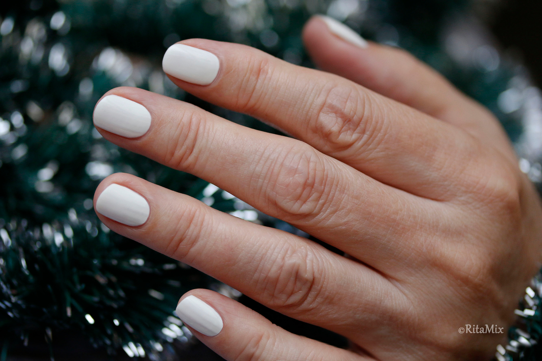 По жизни у меня сложное отношение к белому. Не люблю белые дома, машины, интерьеры, на меня они навевают тоску, но просто обожаю белое в природе, например цветы, искрящийся снег, люблю этот цвет в одежде, аксессуарах и, конечно, приветствую в маникюре. Именно поэтому белых лаков у меня предостаточно.