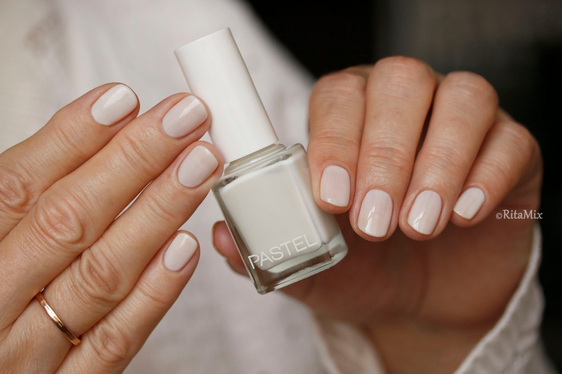 У Рastel # 03 именно такая. Кроме того, он хорошо пигментированный, с неплохими характеристиками самовыравнивания и высыхания. В один слой этот лак отлично подходит в качестве основы под цветные лаки — без проблем корректирует желтизну и неровности ногтей, главное нанести его тонким слоем, и тогда не будет никаких полос. А если рассматривать его как самодостаточный лак, то стоит наносить в два-три плотных слоя.