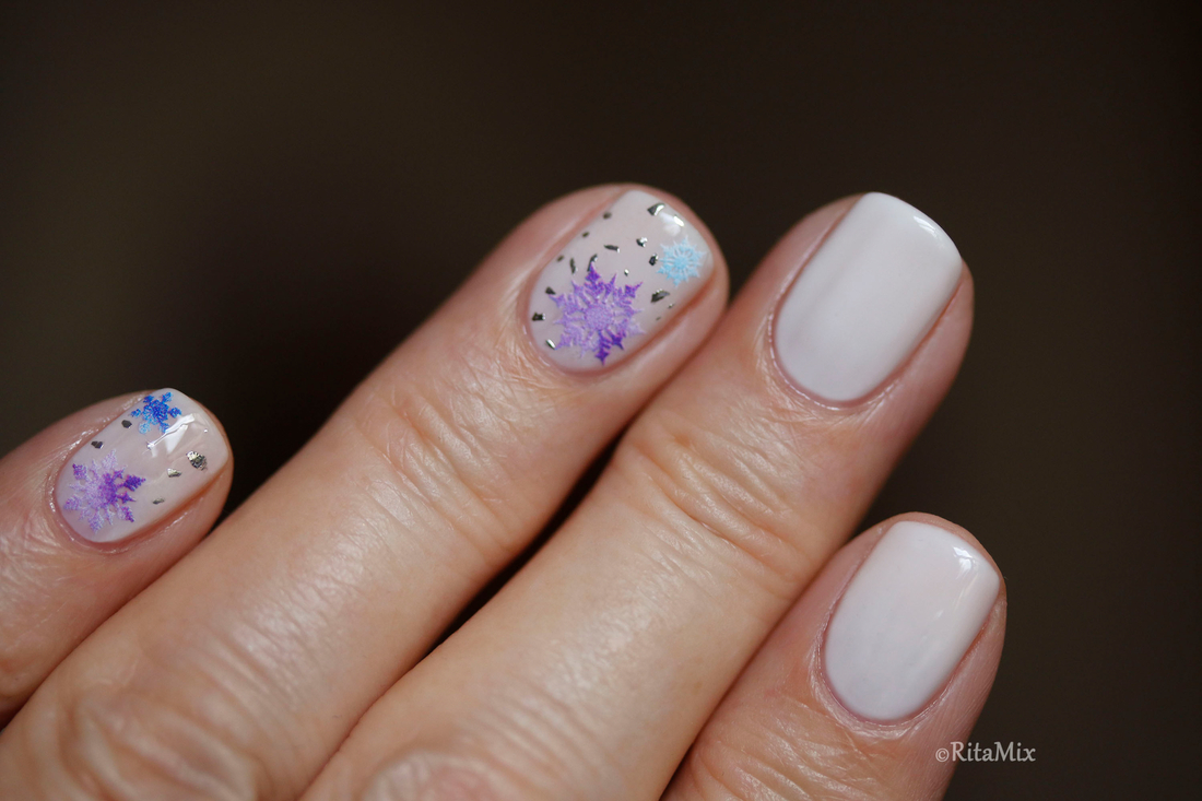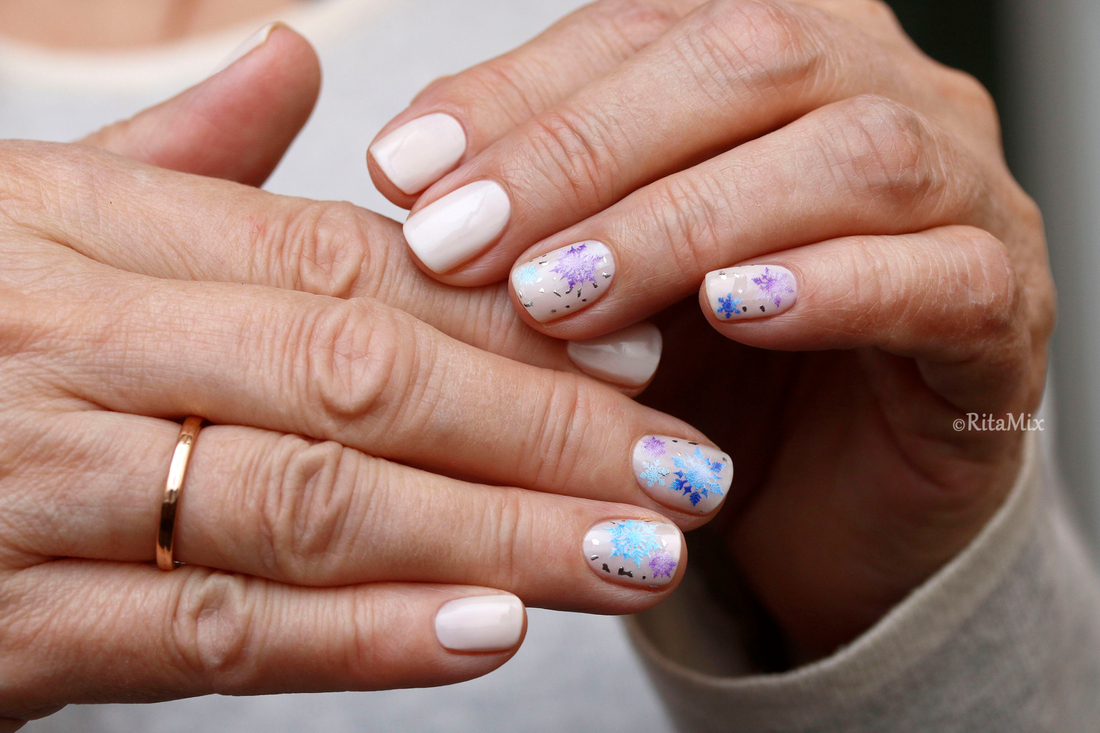 Я люблю использовать Nailor Hongshou как основу в маникюрах с различными декорами и уже однажды показывала зимний маникюр с этим лаком (пост). Сегодня покажу еще один. В нем я также использовала водные слайдеры. Нанесла лак на ногти в два слоя, далее добавила слайдеры, затем свободные от декора ногти покрыла еще одним слоем лака. Весь маникюр закрепила топом.