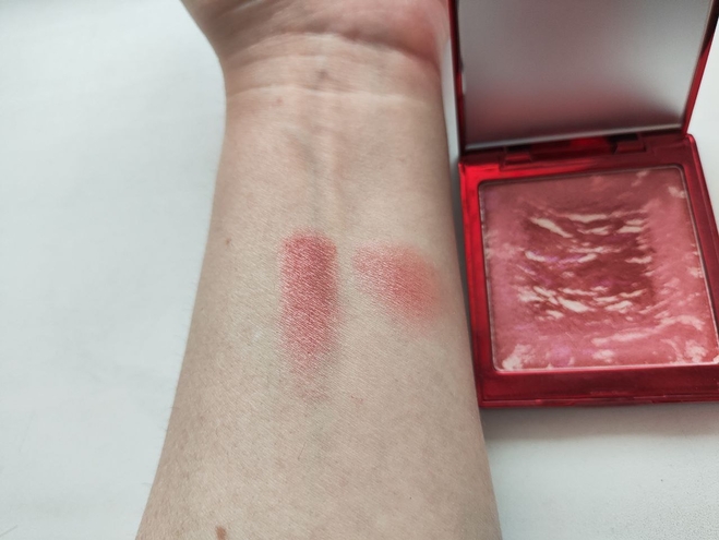 Конечно, я сразу ищу сходство с тем, что у меня уже имелось и могу сказать, что немного похожи на хайлайтер от Dior Backstage. Просто Диор более розовый и скорее чисто хайлайтер из-за сияния.