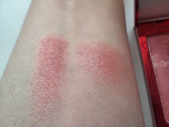 На лице они не сильно отдают в оттенок, больше уходят в сияние. И мне это очень нравится. Румяна смотрятся красиво и в качестве хайлайтера достаточно деликатно. Что важно — не лежат пятном в анфас. То есть, какого то розового пятна или сгустка блесток не будет.