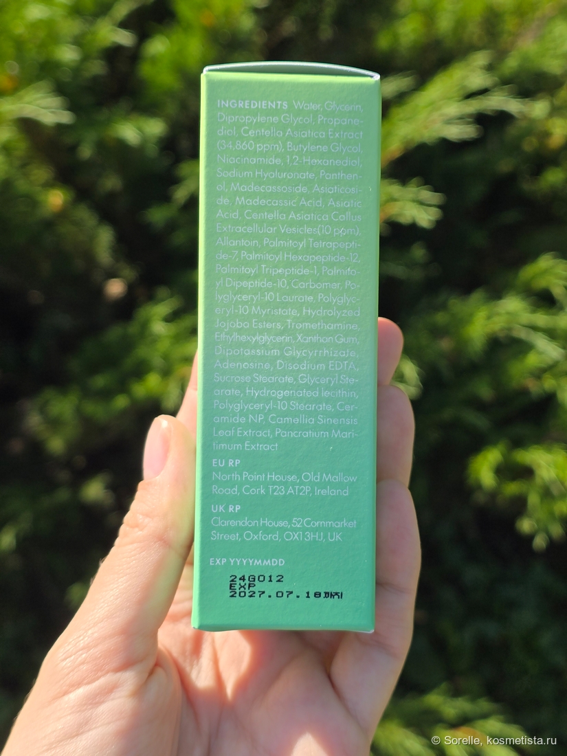В составе экстракты (в том числе центелла, которую моя кожа обожает за успокаивающий эффект), ниацинамид, пантенол, церамиды и пептиды.