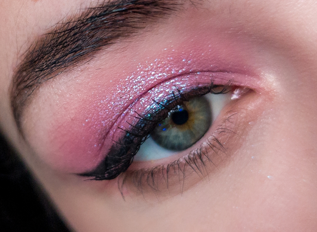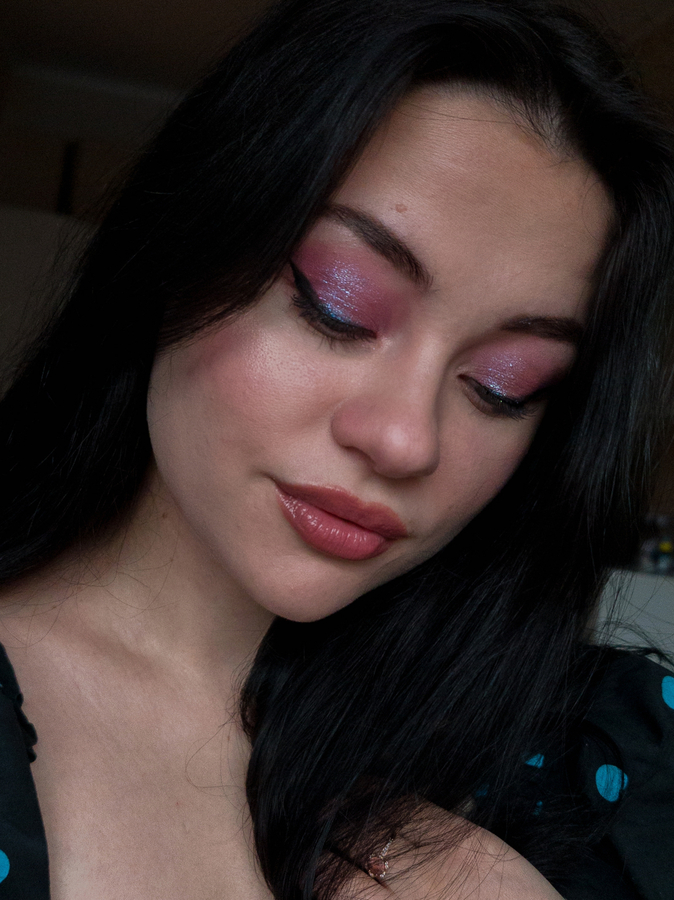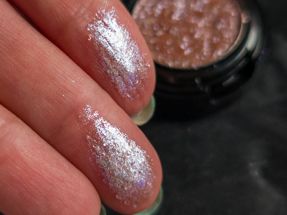 Здесь я уже нанесла спаркл на подложку из жидких розовых теней. И как красиво заиграл этот дуэт!