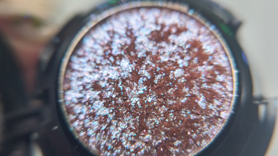 Сказать, что спаркл растирается на веке в ровную сияющую гладь, я не могу, его покрытие больше похоже на полупрозрачную базу со множеством отдельных искорок. Просто карнавалом искорок! Я не советую его слишком Толстой наносить, иначе может скататься в складочках века.