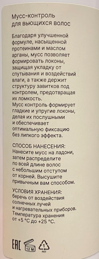 Пенка обещает формировать локоны, защищать укладку от влаги, предотвращать спутывание, сохранять структуру завитка, предотвращать ломкость, оптимальную фиксацию без липкости