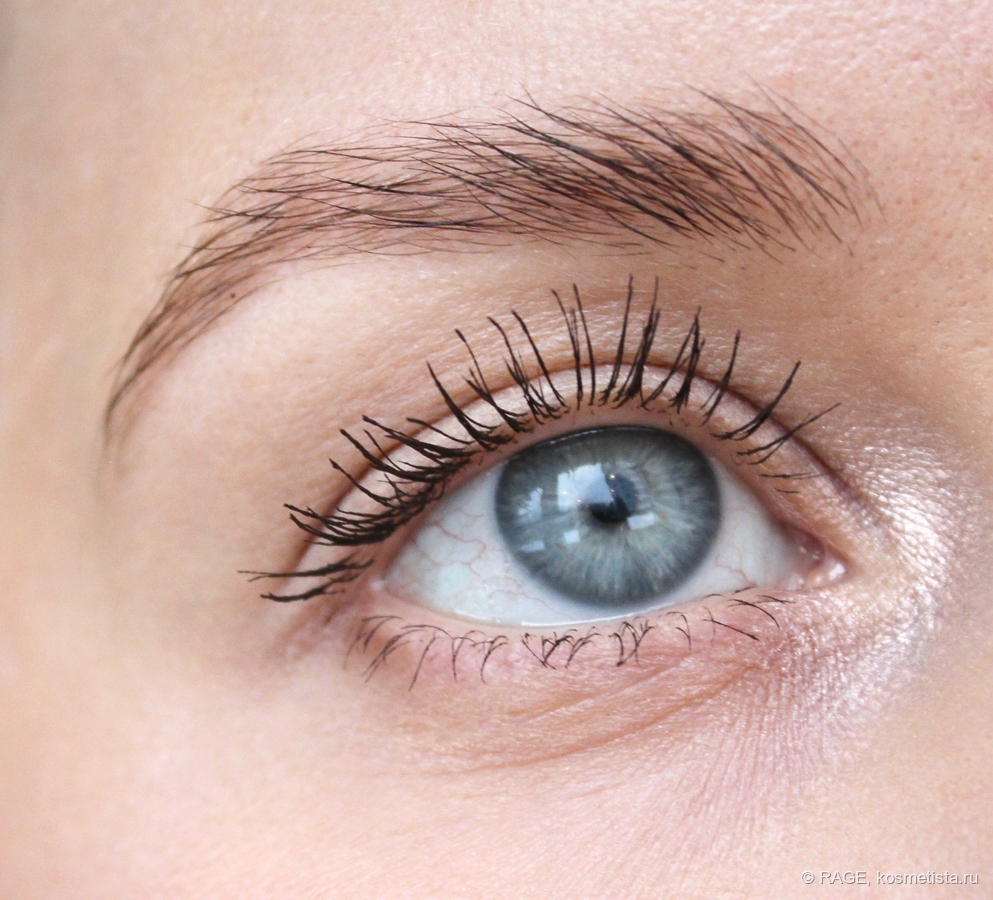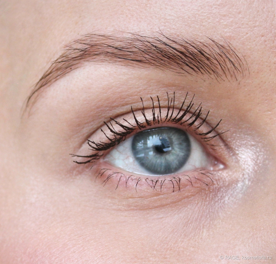Хоть и никакого эффекта драмы нет, это всё равно приличный объём, ресницы утолщены и хорошо выделяются в макияже: