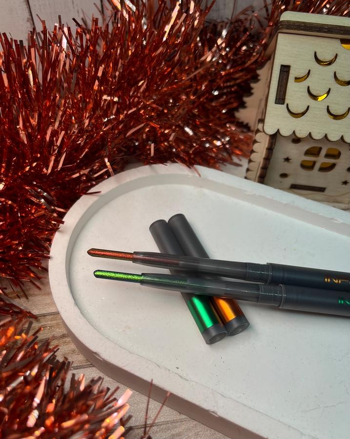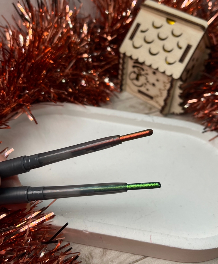 Наверняка вы видели эти дуохромные карандаши: они сейчас во всех рекомендациях. Их популярность в сети зашкаливает, а найти в продаже — тот ещё квест! Особенно я охотилась за зелёным оттенком — он настоящий хит линейки. Наконец-то мне повезло: заполучила сразу два заветных оттенка, да ещё и с приятной скидкой.