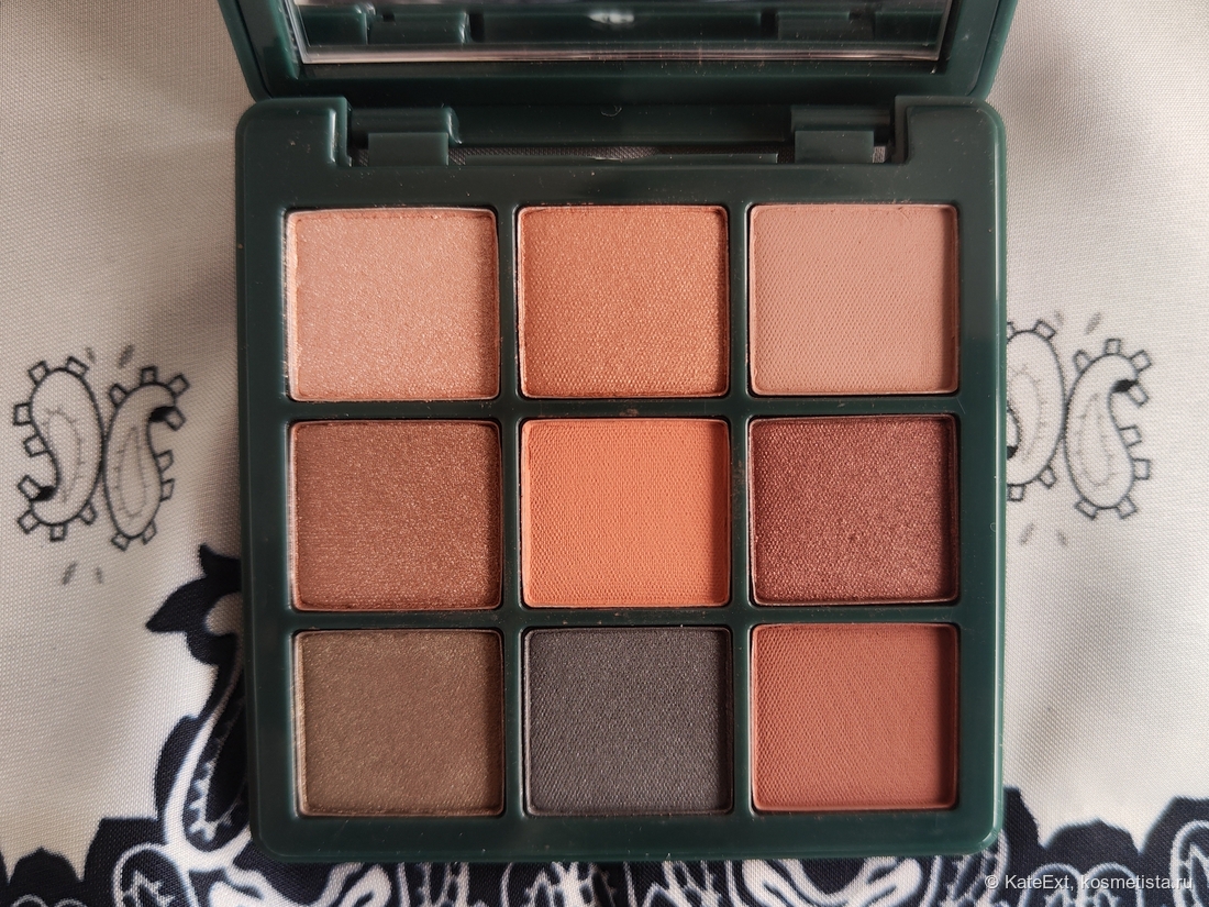 Тени прикрывала квадратная пластиковая пластинка, чтобы пыль не отпечатывалась на зеркале. Рефилов в палетке 9, как и во всех мини палетках Анастасии (если, конечно, мне память не изменяет), и их оформление такое же классическое для мини версий, так что тут останавливаться надолго не будем — симметричные квадратики, просто и со вкусом.