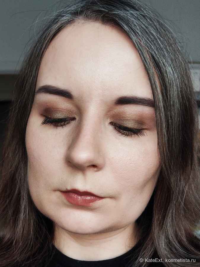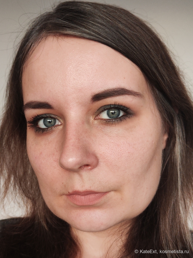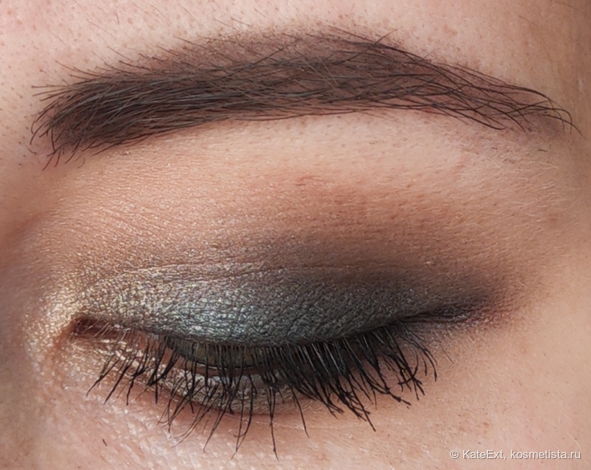 В складке — А1, внешний уголок затемнен В3, на подвижном веке — С1. Зеленца, как я и говорила, сбежала, но повторюсь, возможно, это исключительно проблема моих век: на мне вообще зеленое редко смотрится зеленым.