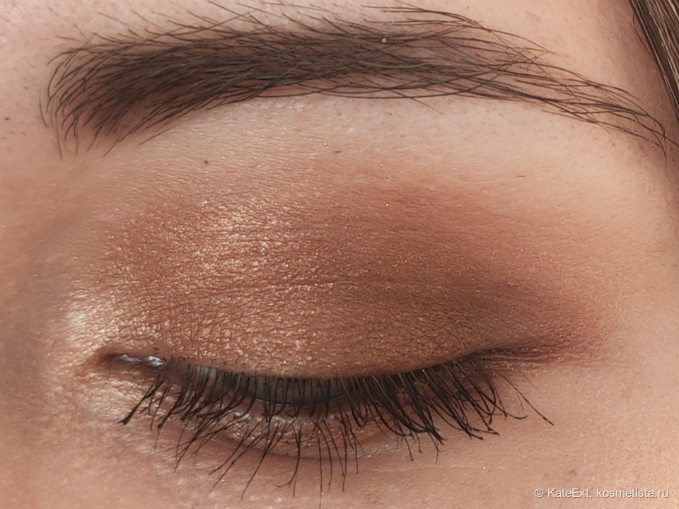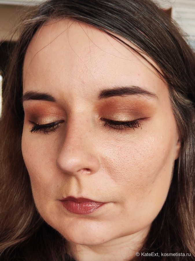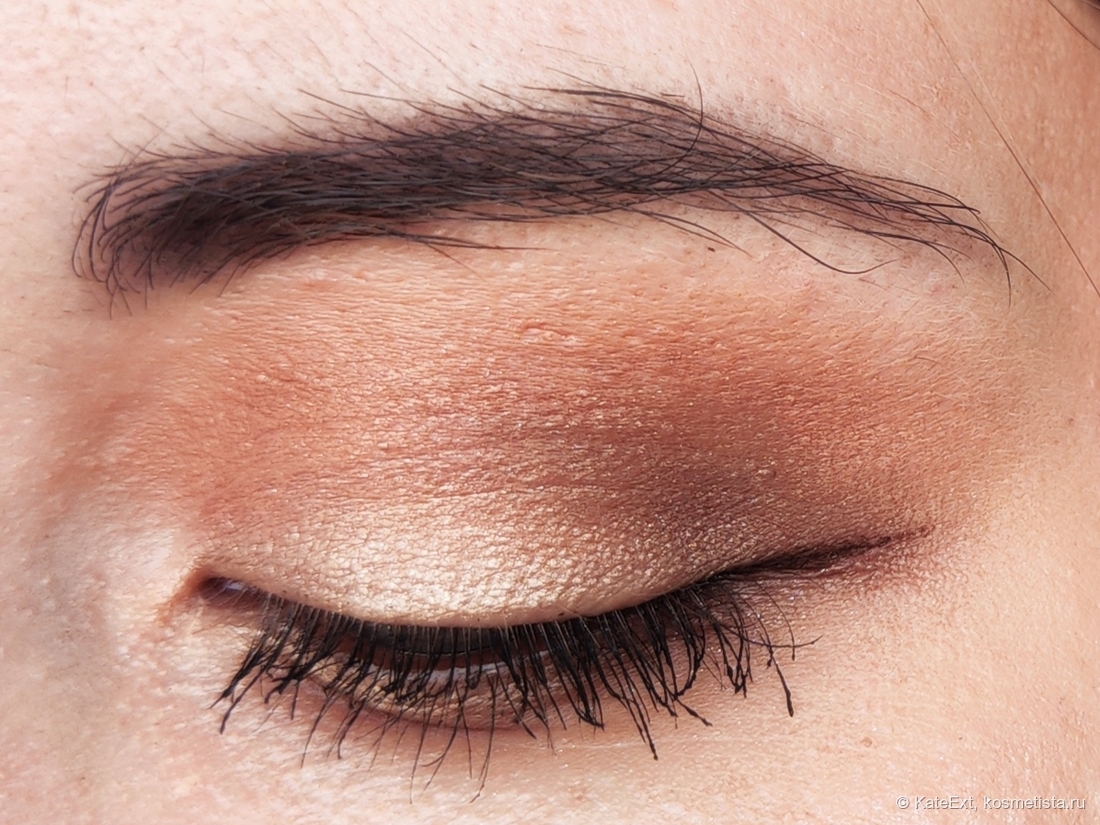 И да, песня по сути таже, хотя я и использовала другие оттенки — основной так вообще намного светлее, чем в предыдущих макияжах. Вживую и без макро разницы заметна тоже минимально. Разве что шампань сияет чуть поярче, чем другие сатины.