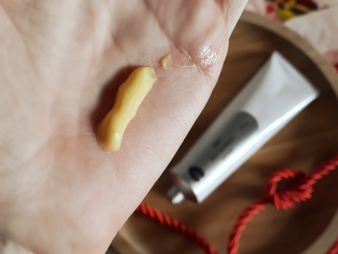 Консистенция оказалась очень приятной. Цвет крема желтенький.