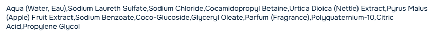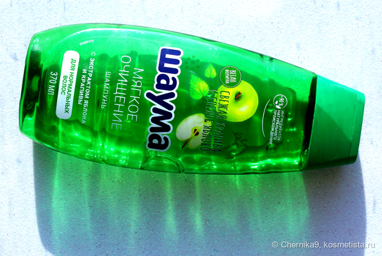 Экстракт яблока не на последнем месте стоит, вторым от крапивы. Начитавшись обещаний производителя на флаконе, где пирамида аромата не указана, я решила, что шампунь с таким ароматом, как у Шаумы просто не может быть плохим. Тем более, что и стоил он копейки.