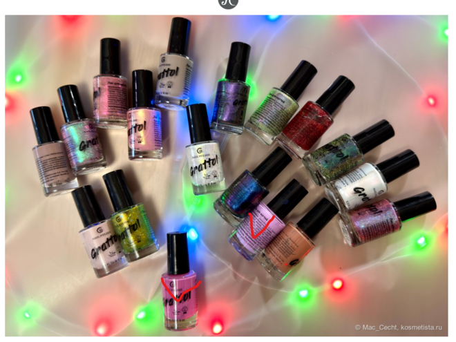 Grattol — однозначно марка 2025 года. За полгода у меня появилось 50 лаков! Не буду врать, я не все их купила сама: многое мне прислали на тестирование, многое я продолжила покупать, несмотря на то что мне шлют на тестирование, часть еще подарили друзья на разные праздники.