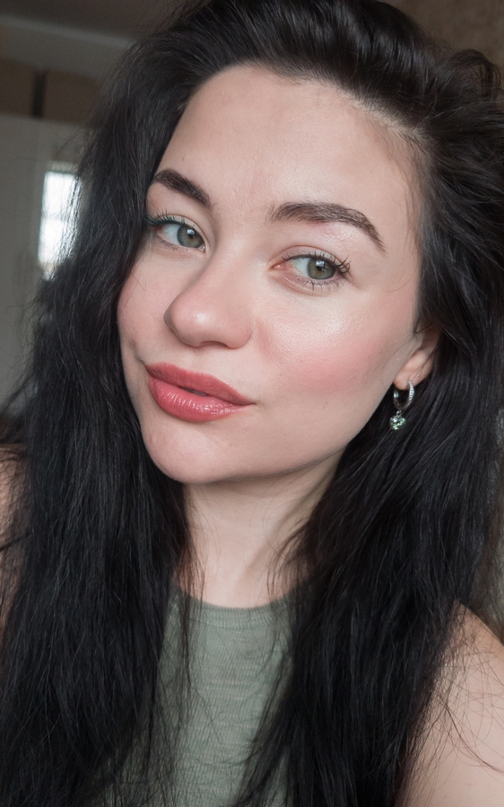 Зеленая версия однозначно лучше разделяет реснички, посмотрите, у меня буквально каждая из них подчеркнута и стоит отдельно. Но в целом, эффект от туши получился натуральным, потому формула у нее не жирная, и поэтому ложится она очень тонко и аккуратно.