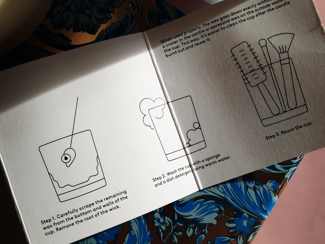 Упаковка представляет собой картонный тубус из шероховатой бумаги и он достаточно хорошо оберегает содержимое во время транспортировки. Внутри свеча, которая состоит из стеклянного подсвечника (стакан кремового цвета), воск минеральный белого цвета с ароматной композицией, фитиль хлопковый и золотистая металлическая крышка. Вложена аннотация с описанием пирамиды, кратко о философии бренда, на обратной стороне как можно использовать стакан после выгорания воска: