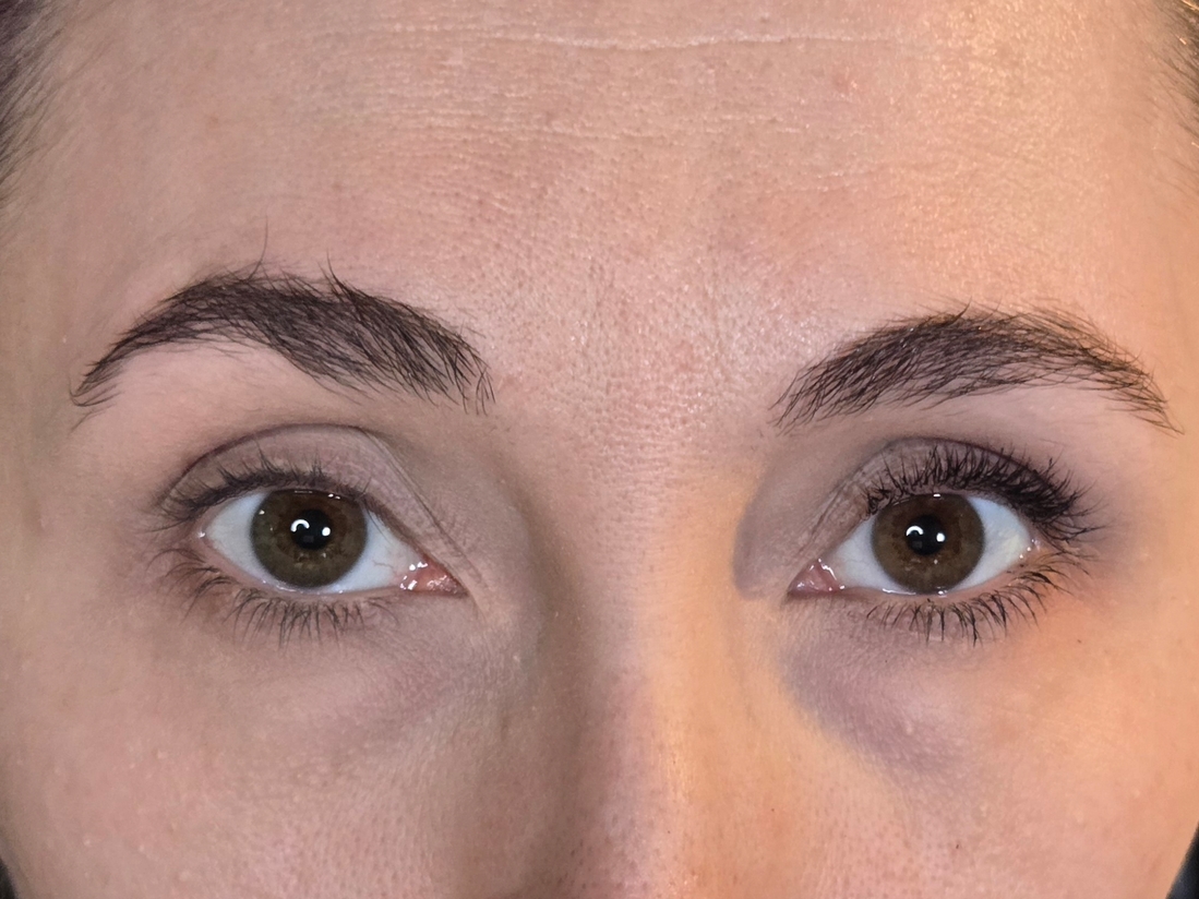 Очевидно, что накрасить ей глаз и не заехать куда-то вокруг это надо постараться. Но тем не менее, прокрашивает одна быстро и реснички выделяет.