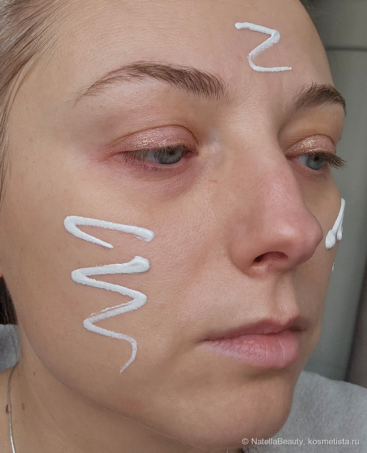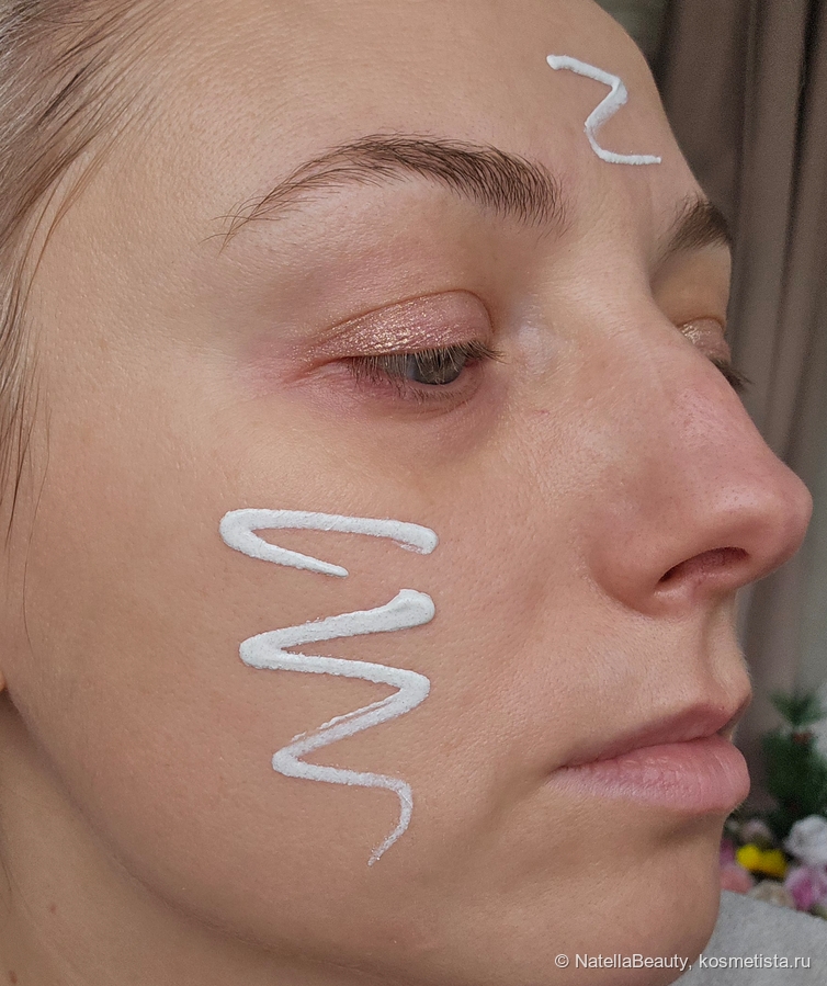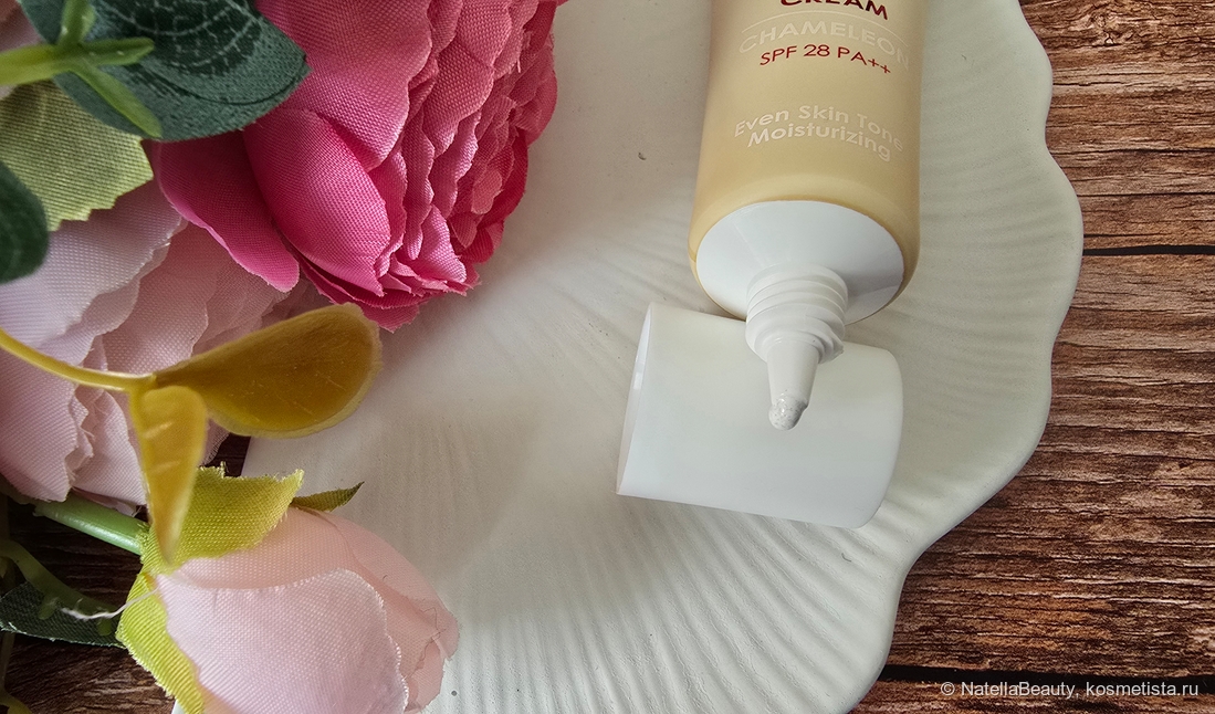 Текстура кремовая. СС крем прекрасно ложится на кожу, не вызывает ощущения сухости и стянутости, не подчеркивает шелушения.