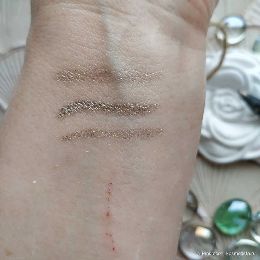 Цвет грифеля золотистый, с легким оливковым оттенком и слишком шиммерный для меня.
