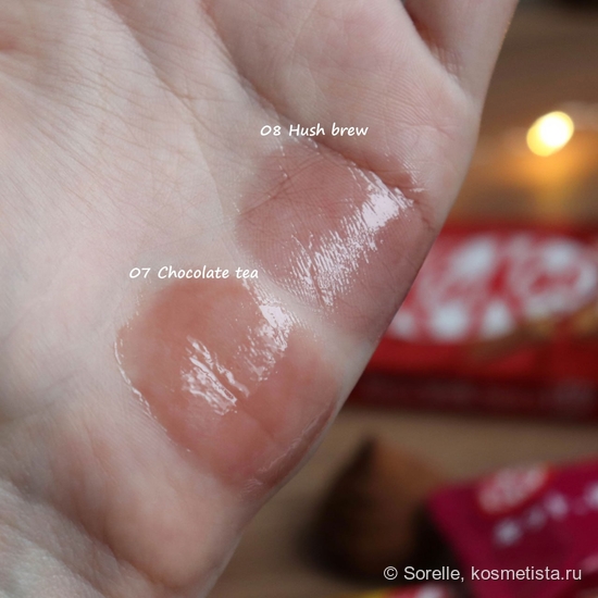 Тонким слоем на губах смотрится симпатично — придает им яркости и блеска, хотя финиш тут далеко не стеклянный, я бы сказала, что он влажный. Липкость есть, но совсем небольшая.