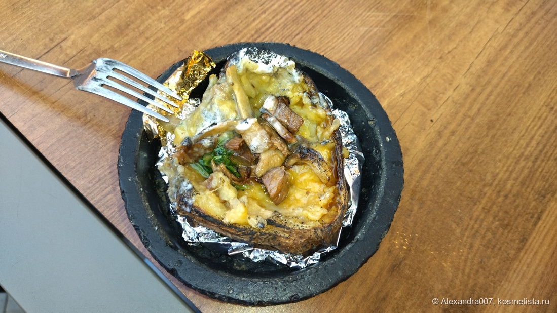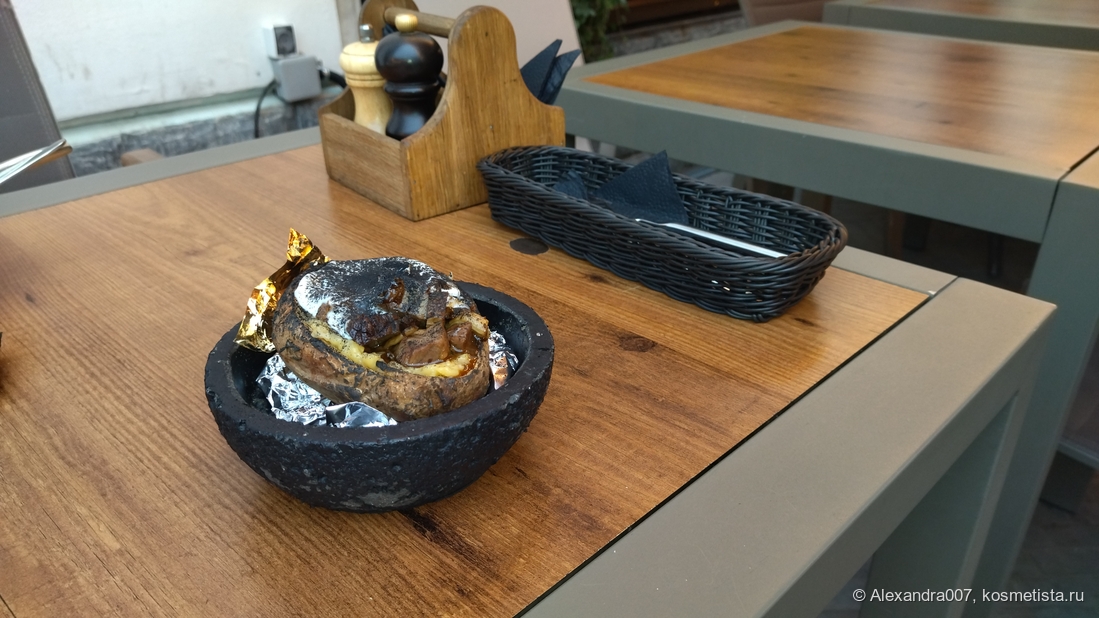 Моё меню: конина в крошке-картошке с каким-то вроде слиовчным или грибным соусом и лёгкий коктейль. БЫл ли салат — опять же память девичья 😬