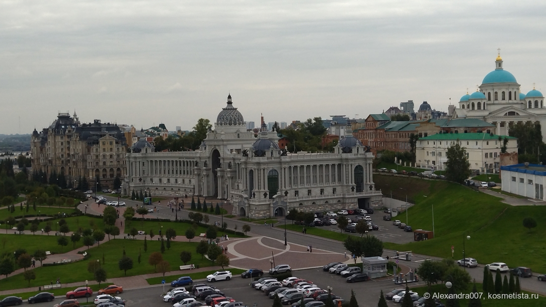 Посмотрели с Кремля на знаменитый ЗАГС в форме казана (увы, фото плохие вышли, так как другой берег был под моросью\в тумане, мой телефон не смог сфокусироваться), зато поймала в объектив Дворец Земледельцев.