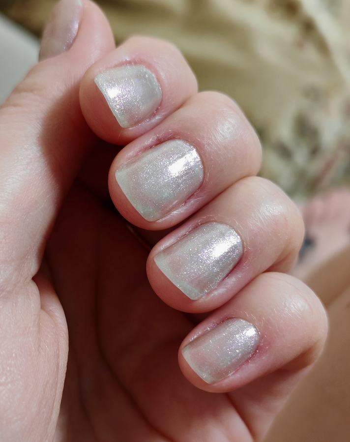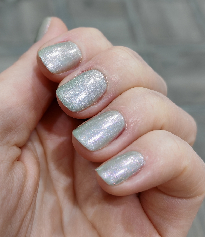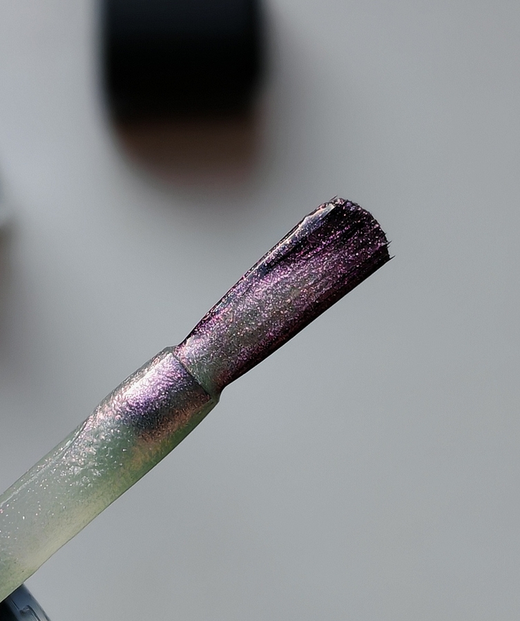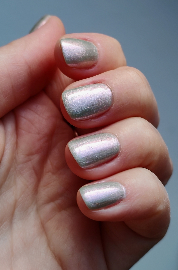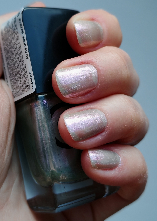 164 Elsa favourite — розово-серебристо-сиреневые блестки на серовато-зеленоватой базе. Оттенок меняется в зависимости от освещения. Во флаконе создаётся ощущение бензиновых разводов.