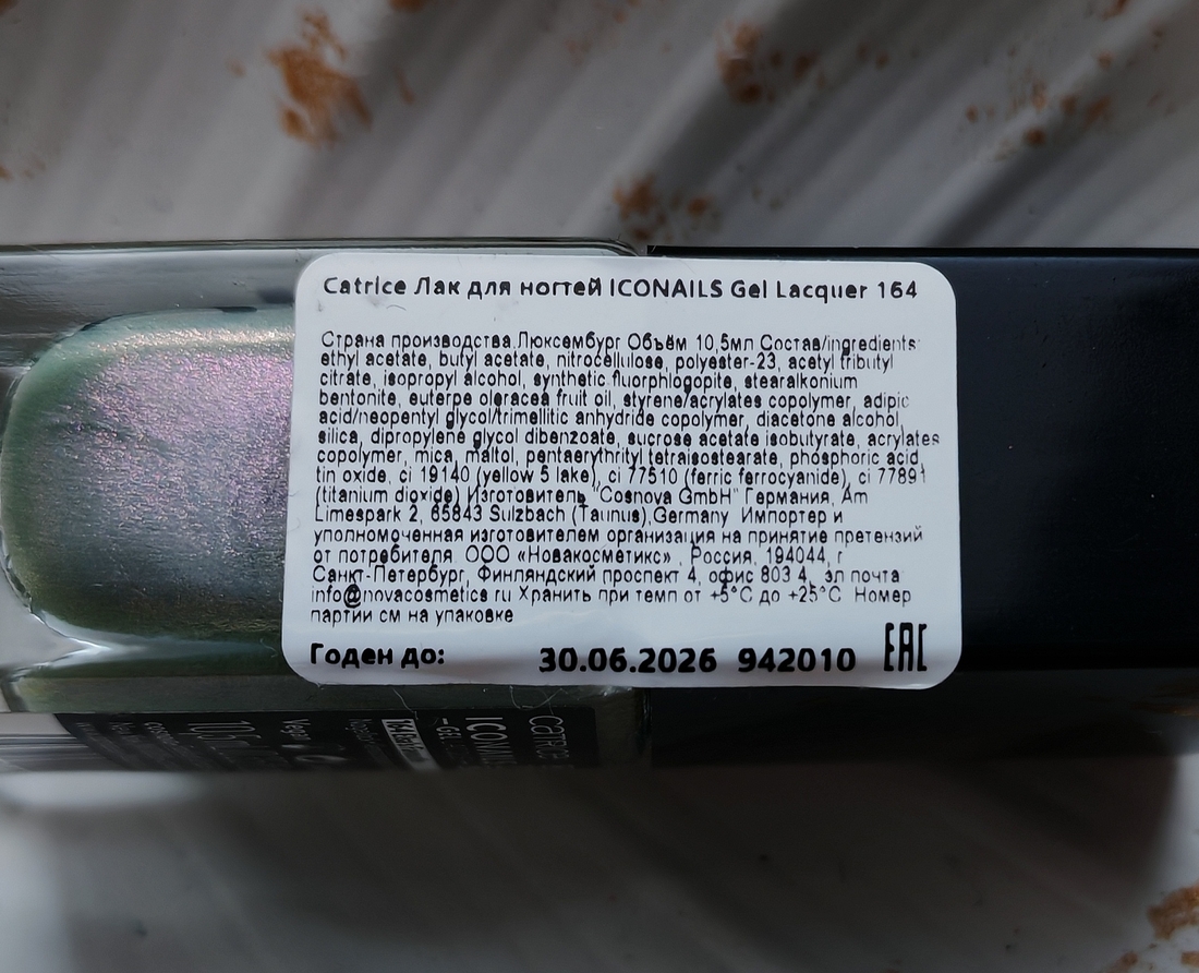 Объём у лака целых 10,5мл. Произведён продукт в Люксембурге, срок годности после вскрытия 36 месяцев.