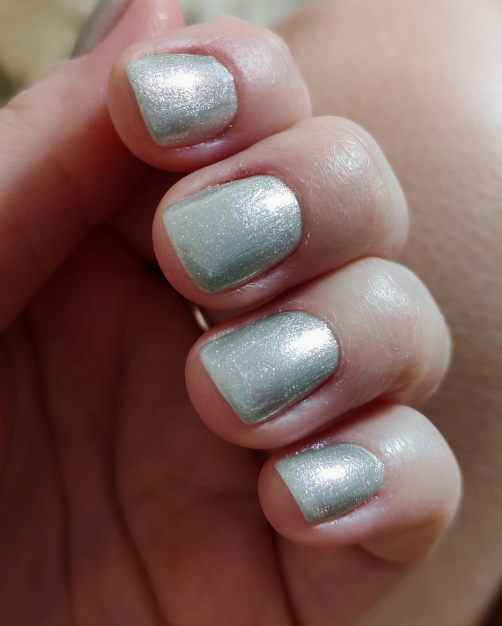 В два слоя лак ложится плотно, проявляет зеленцу.