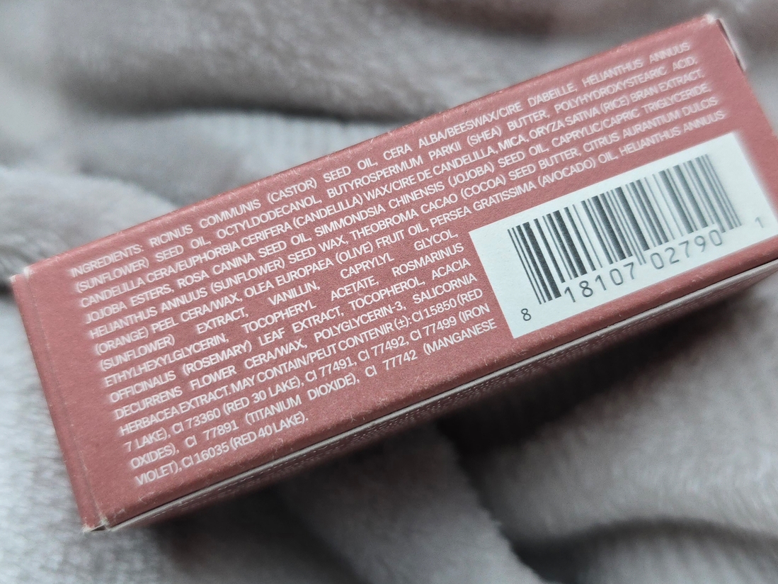 Сам стик бальзама не глянцевый, восково-тверденький, слегка пахнет ванилью. Не доставала его до зимы где-то полгода, мне показалось, что запах чуть изменился, но прогорклым не пахнет. Clean beauty-то clean, но сроки хранения в принципе сопоставимые с обычными помадами, заданный срок после открытия — год. Сделан в США.