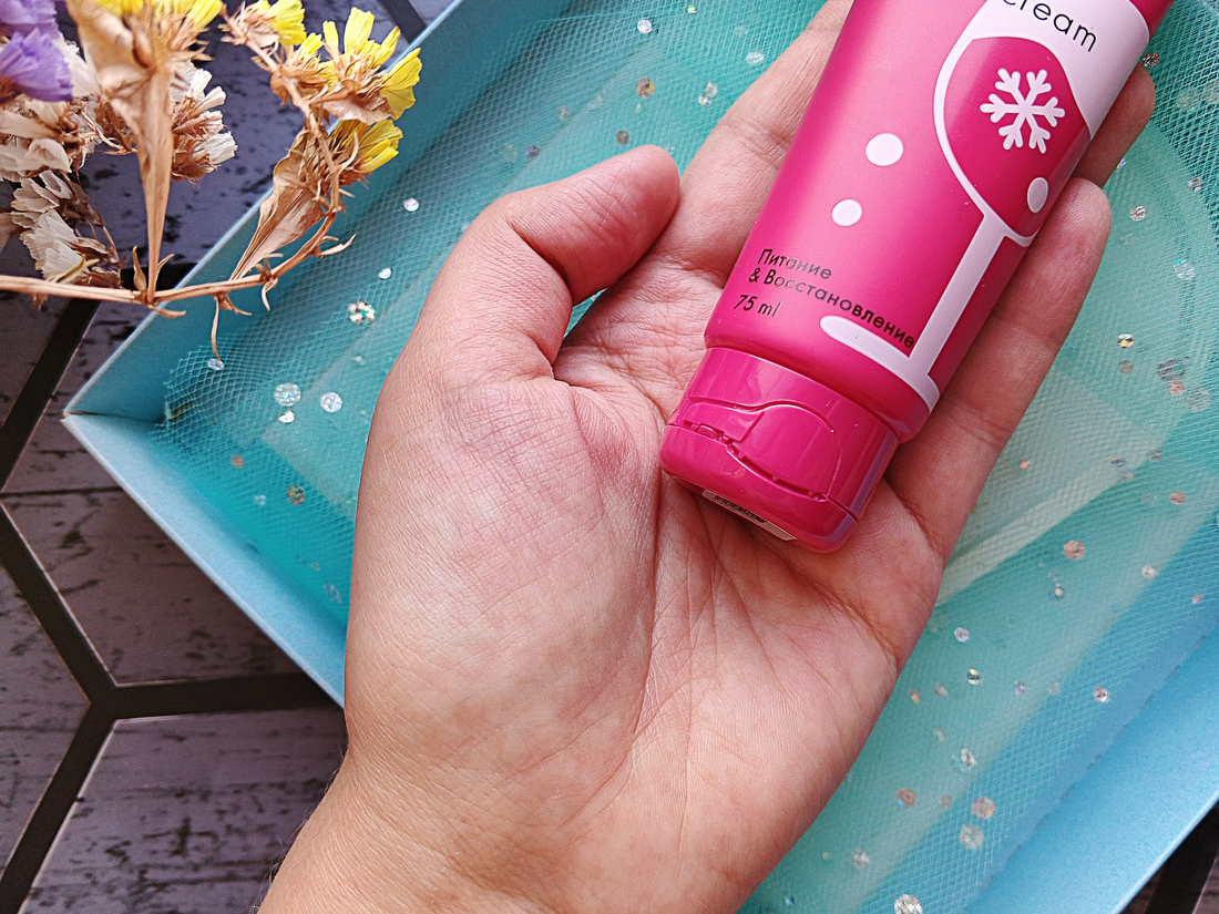 Аромат мне понравился — он очень уютный и «зимний». Пахнет корицей, вишнёвым соком и пряностями. Уже только из-за него к крему часто тянется рука. Аромат не резкий, на коже рук ощущается примерно в течение получаса.