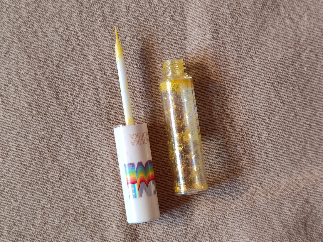 Неоновые глиттерные тени-подводка — это крупные блёстки на прозрачной цветной базе. Мне пришли в качестве подарка за заказ и я долго не понимала, что с ними делать. А потом как поняла… и они закончились. Вещь на любителя. На глаза не стоит. Я по лицу ей рисовала. Объем 4,7 г.