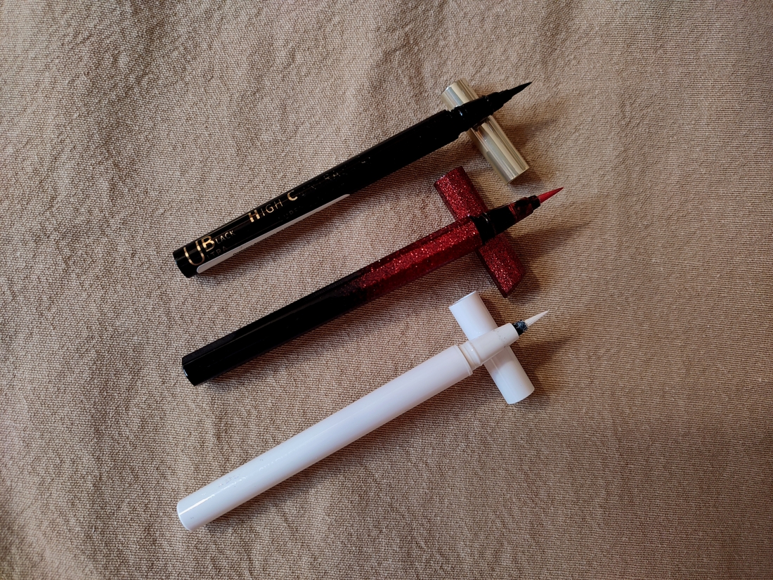 Классная черная подводка за три копейки. Наконечник — кисть. Меня радовала целый год. Из минусов — нестойкая. Но если не мочить и не тереть, никуда она не денется.