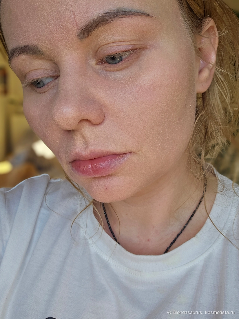 Даже встроенный блюр камеры (так и не нашла как его выключить) не спасает ситуацию. Намазала его ровно один раз и после этой «фотосессии» выкинула.