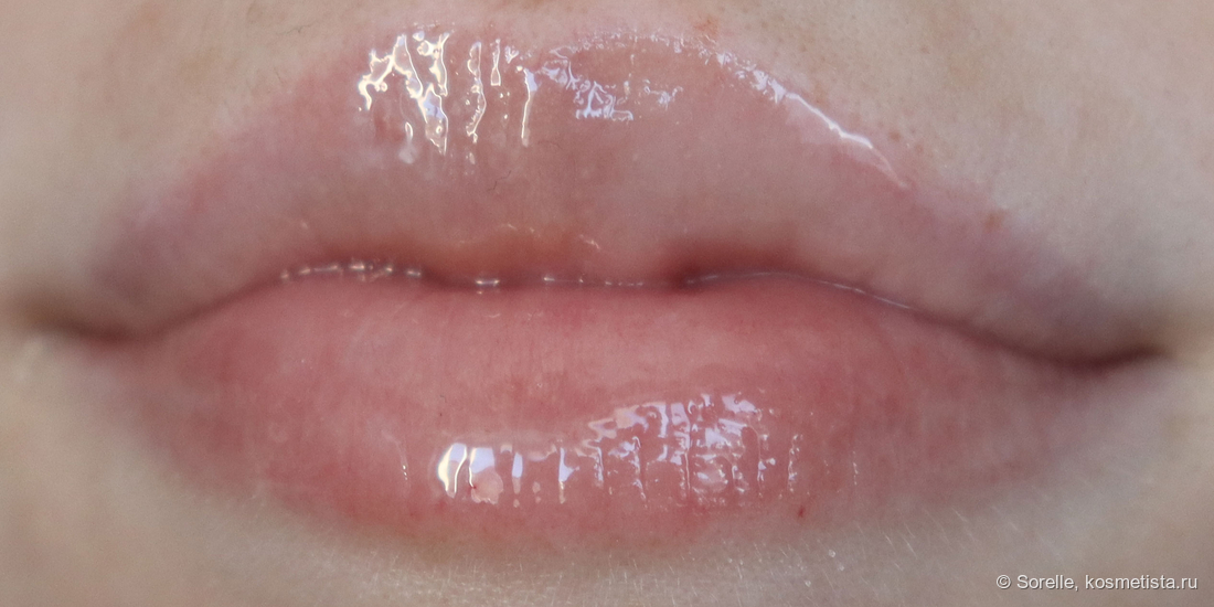 - На губах смотрится симпатично, из-за плотной текстуры бальзам классно выравнивает текстуру и делает стеклянный финиш.