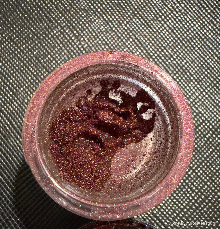 Я считаю его одним из самых красивых в своей коллекции, потому что это основа красного вина с сияшками всех цветов радуги. Это пигмент из серии Экстра, а значит, у него премиальное сырье. У меня версия в 0,5 мл.
