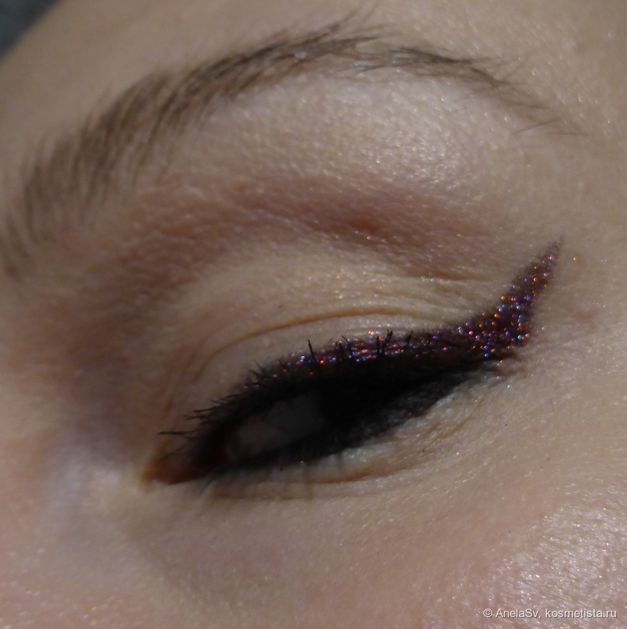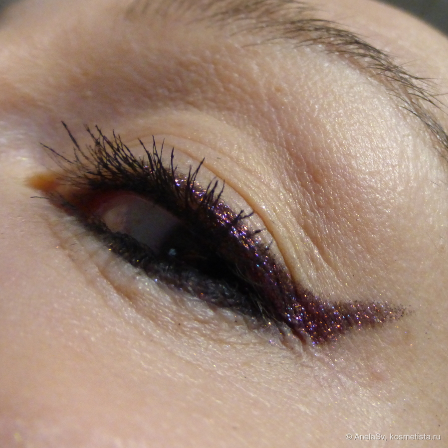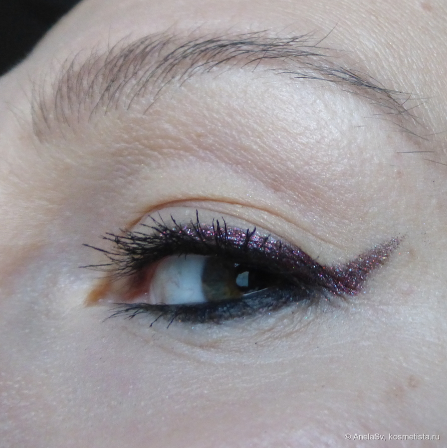 Соло его также можно использовать — но обязательно наносить на тончайший слой липкой базы. Стойкость стандартная, но как обычно — зависит от ваших век.
