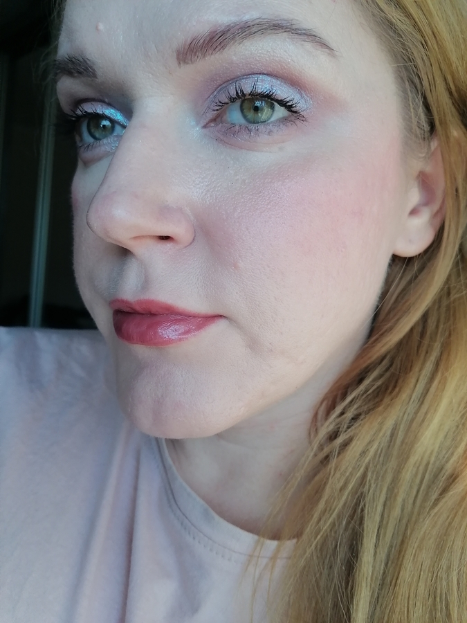 Обычно я не глядя смешиваю все оттенки большой пушистой кистью. Самый светлый оттенок могу использовать как пудру под глаза — нежную кожу она не кукожит и даже немного блюрит. Но для наглядности для отзыва я наносила отдельно более холодный и более теплый ряды румян.