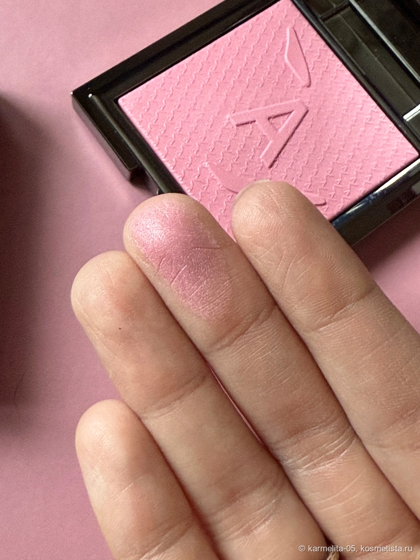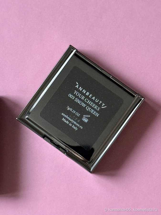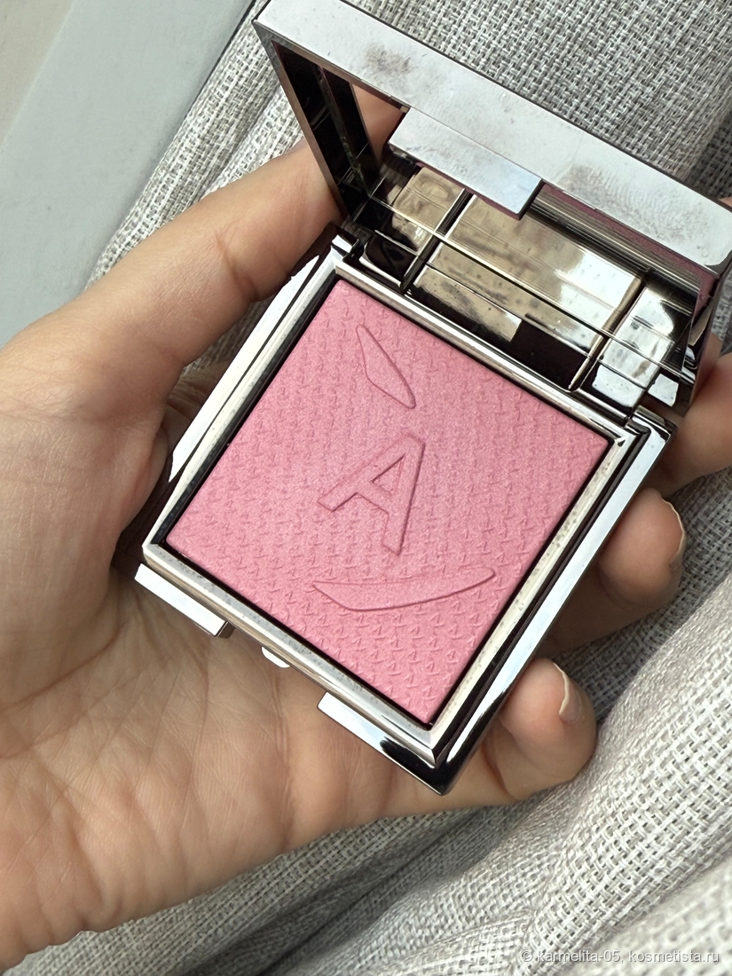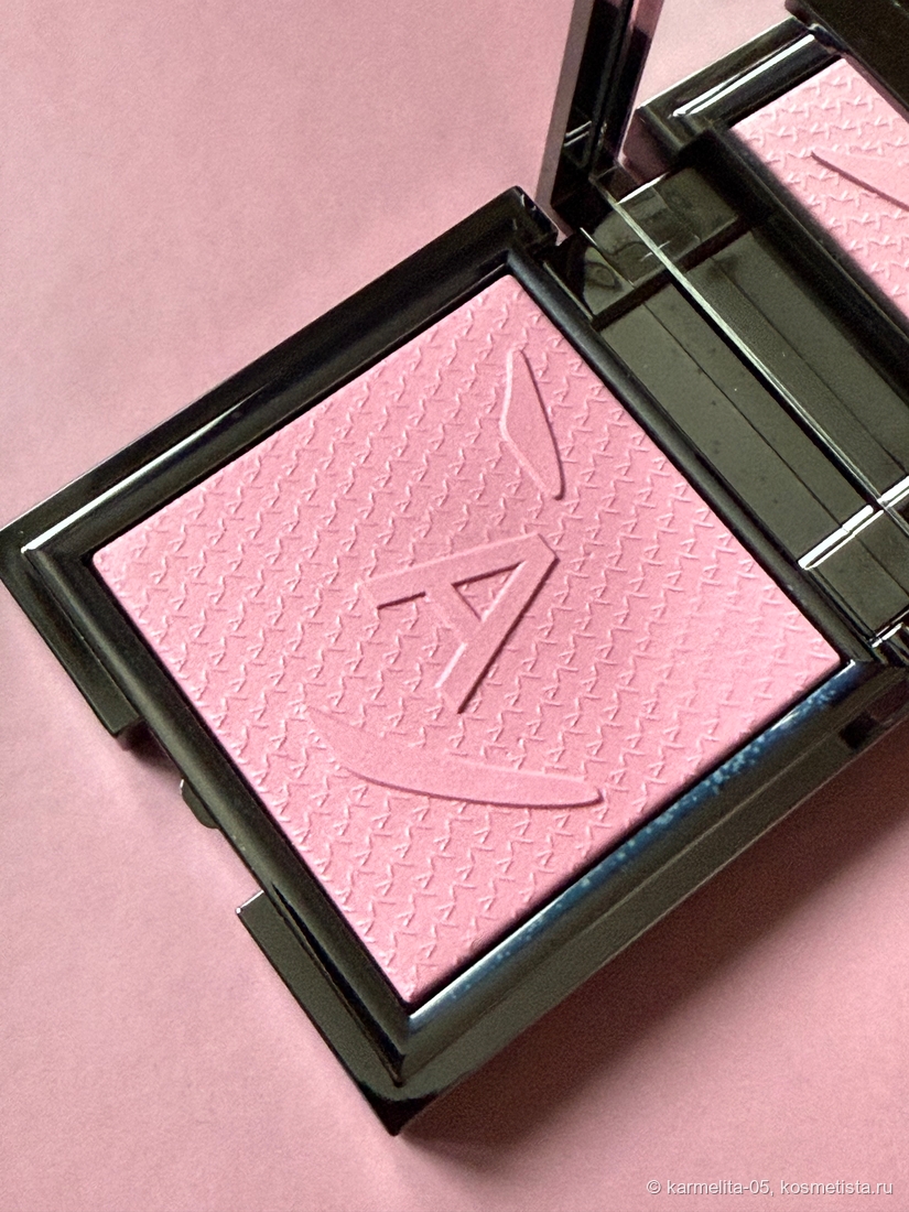 Хочу рассказать о прекрасных румянах с шелковисто-бархатистой текстурой (такое возможно?) в оттенке 003 Snow Queen. Вес продукта 7 г. Футляр маркий глянцевый, внутри хорошее зеркало. Есть бархатистый футляр. На румянах, как и на крышке буква А.