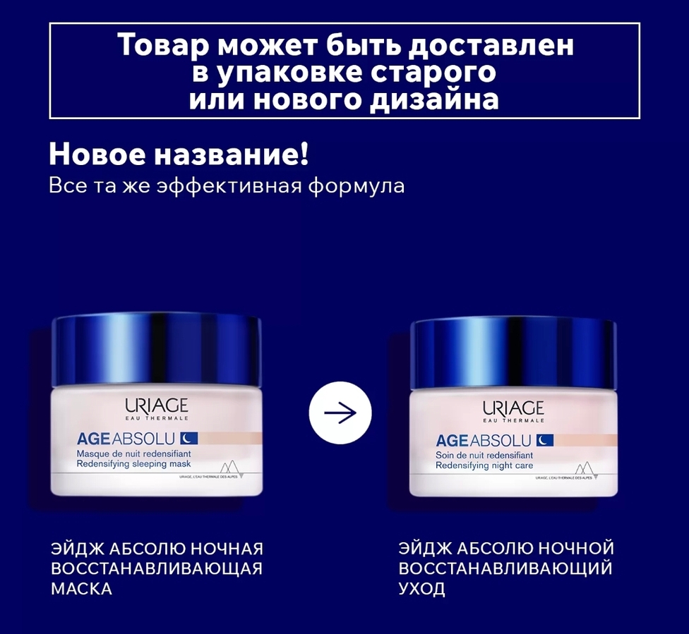 2. Ночная антивозрастная восстанавливающая маска для лица Uriage Age Absolu Redensifying Sleeping Mask