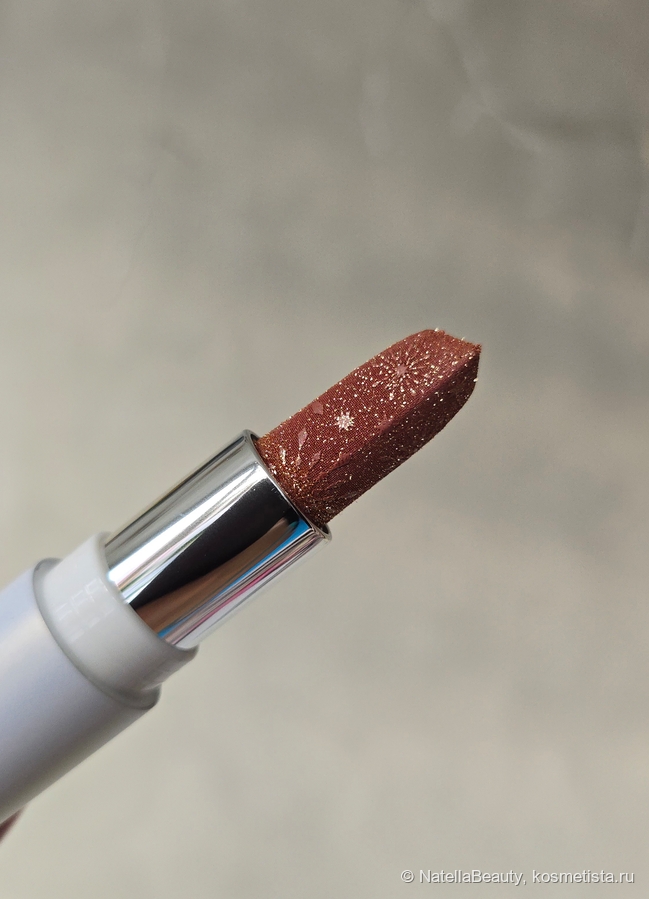 Сам стик очень красивый, с изображением снежинок, посыпан золотым шиммером. Роскошно!