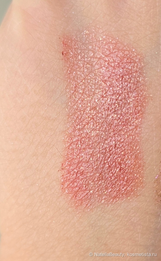 Оттенок 01 Cinnamon Spice — нюдовый бежевый оттенок с явным розовым подтоном. Внутри базы золотой шиммер.