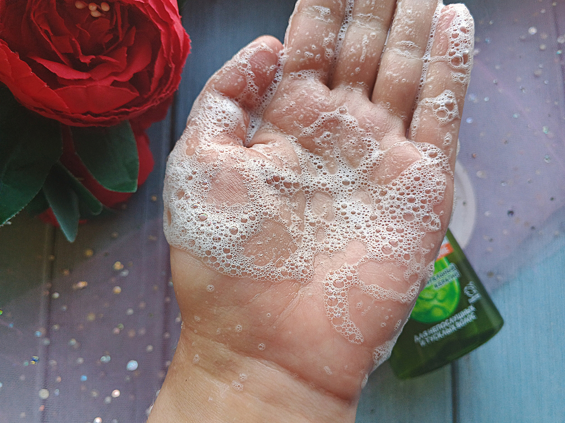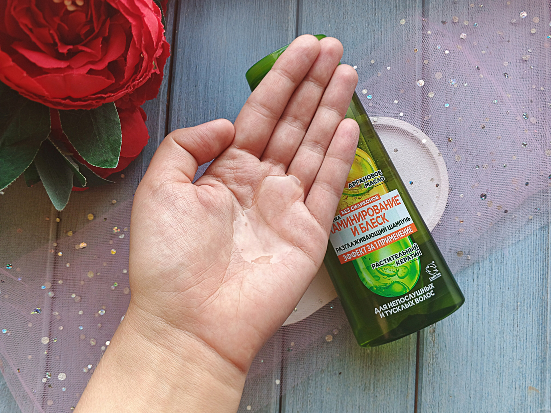 Текстура классическая — гелеобразная, с едва заметным зеленоватым оттенком. Шампунь не слишком густой, но и не водянистый — что-то среднее.