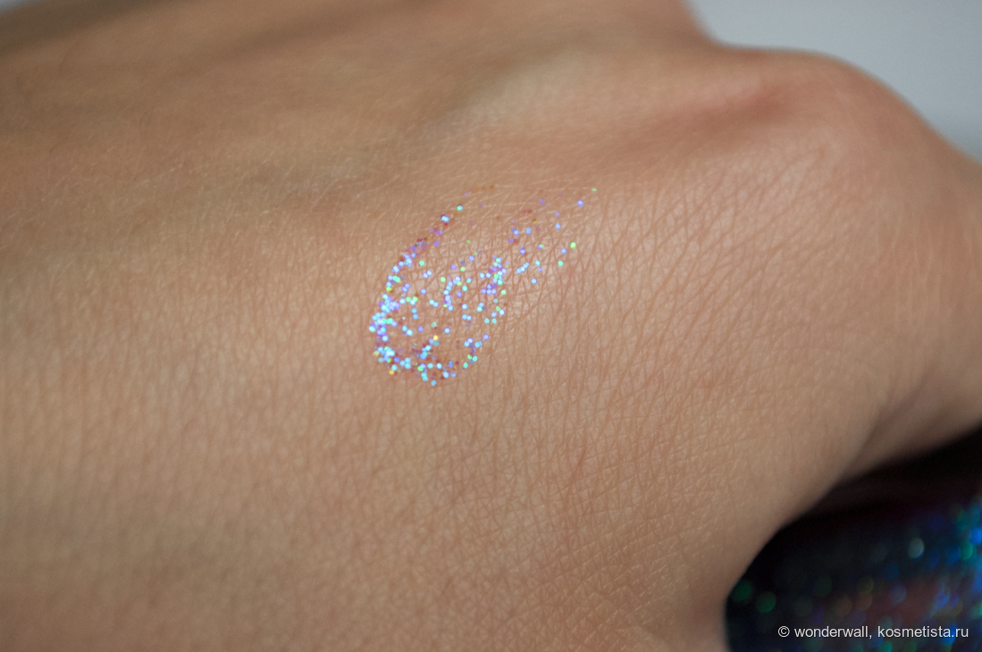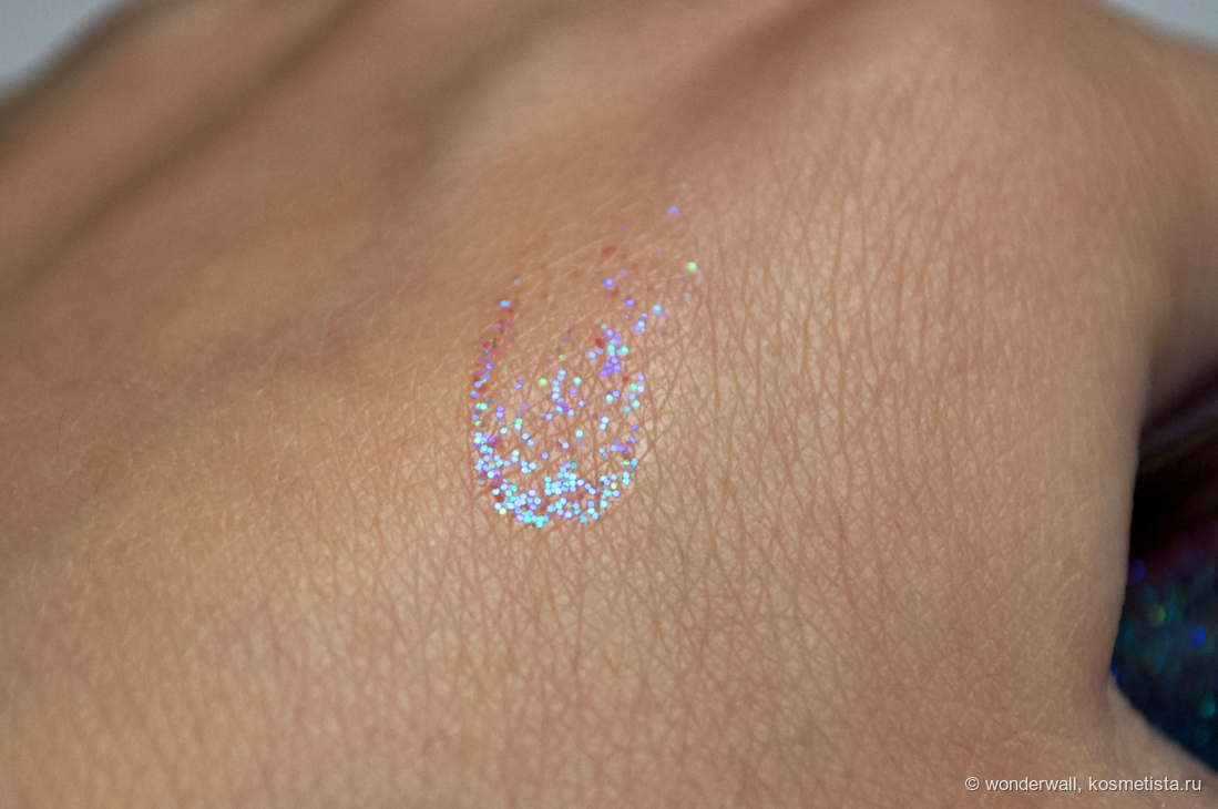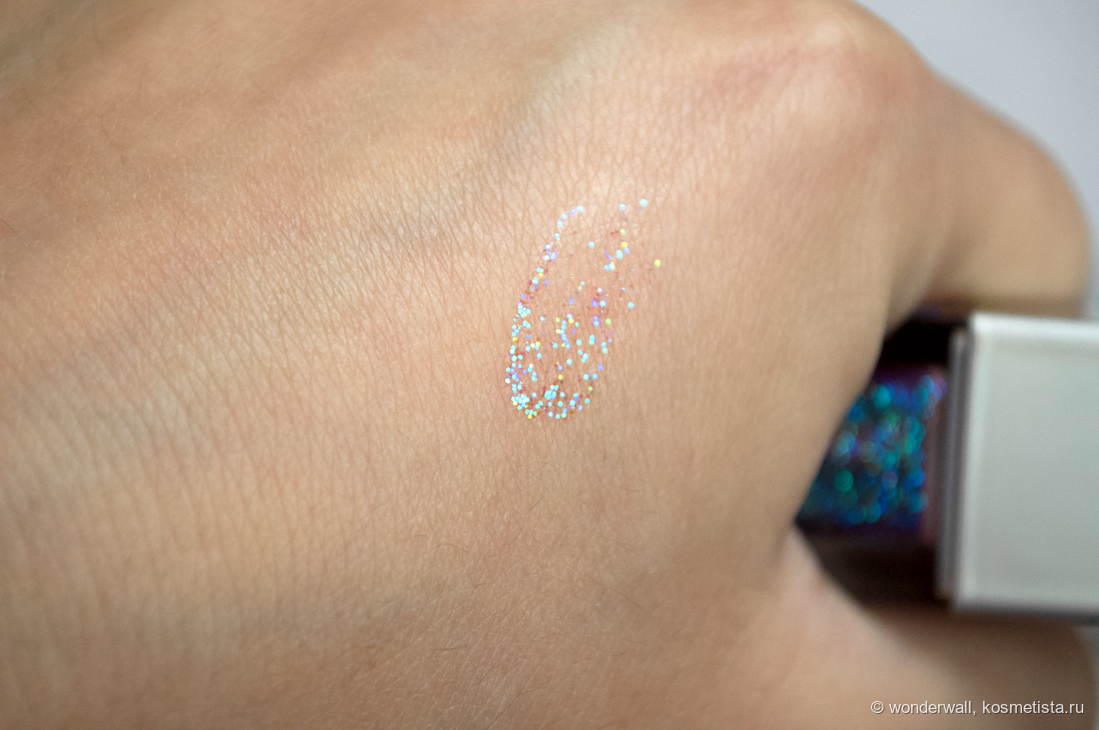 Я бы сказала, что внутри не шиммер, а полноценные блёстки трёх оттенков: синего, голубого и зелёного.