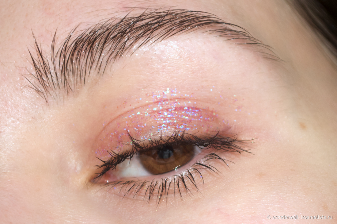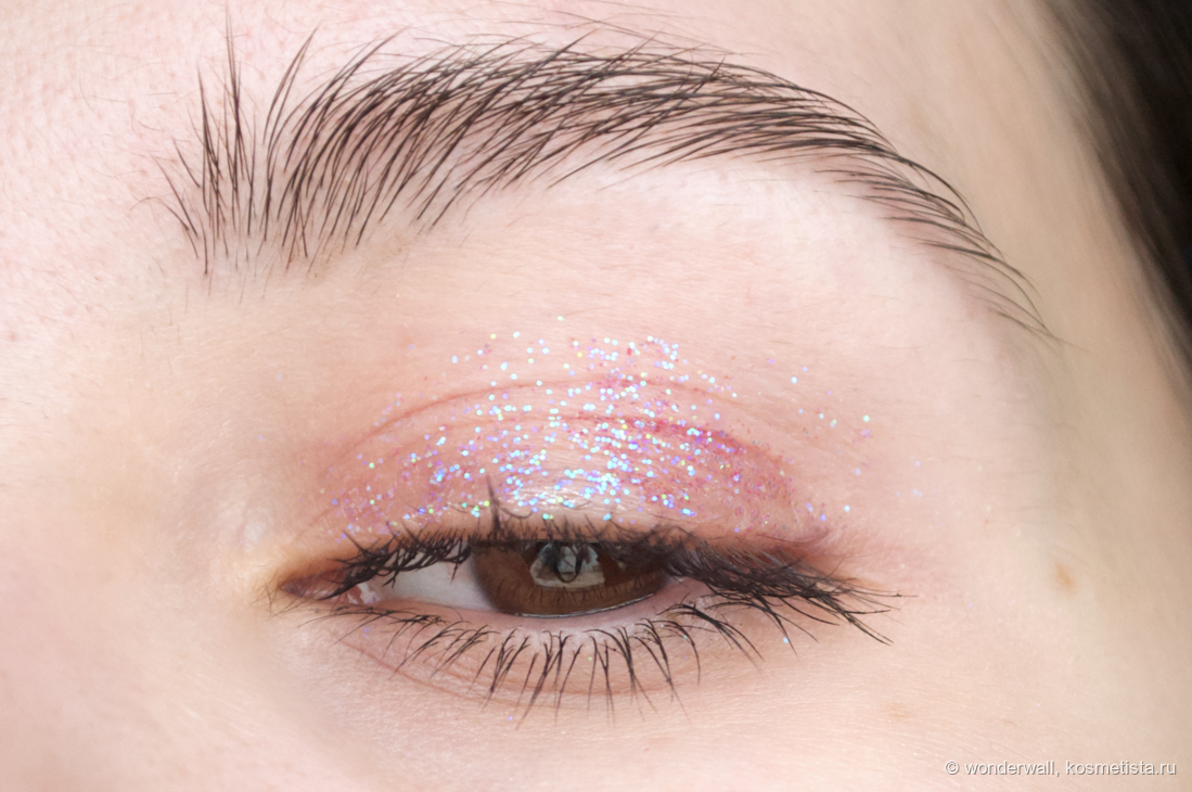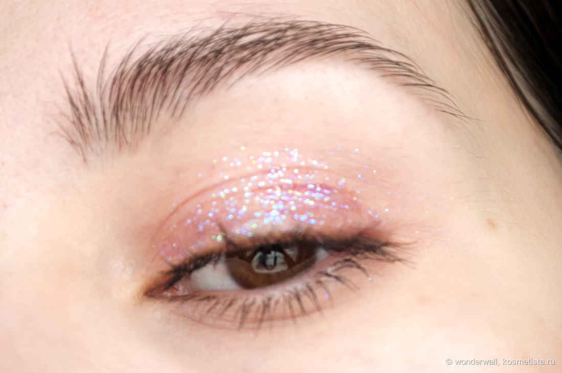 Стойкость феноменальная! Блёстки продержались на глазах около 12 часов. Возможно, несколько штук и улетело на щёки, но специально я их не искала.