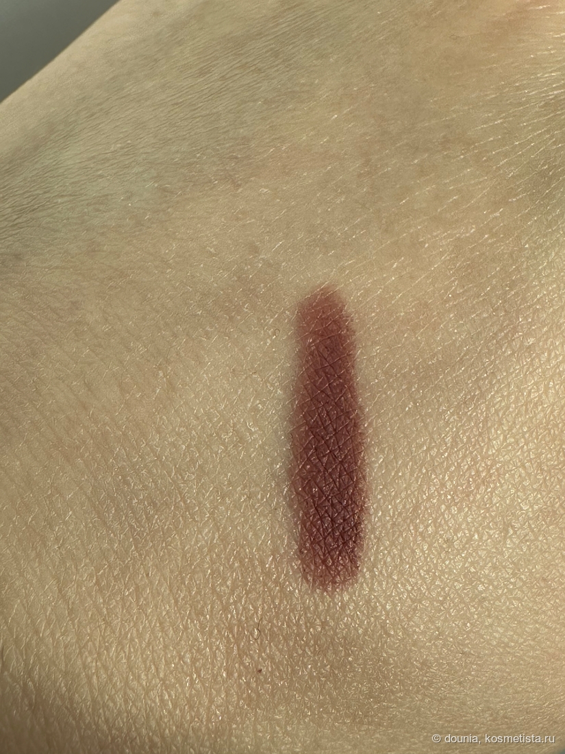 Наносила достаточно плотным слоем чтобы показать, насколько оттенок темнее и холоднее собственного пигмента.