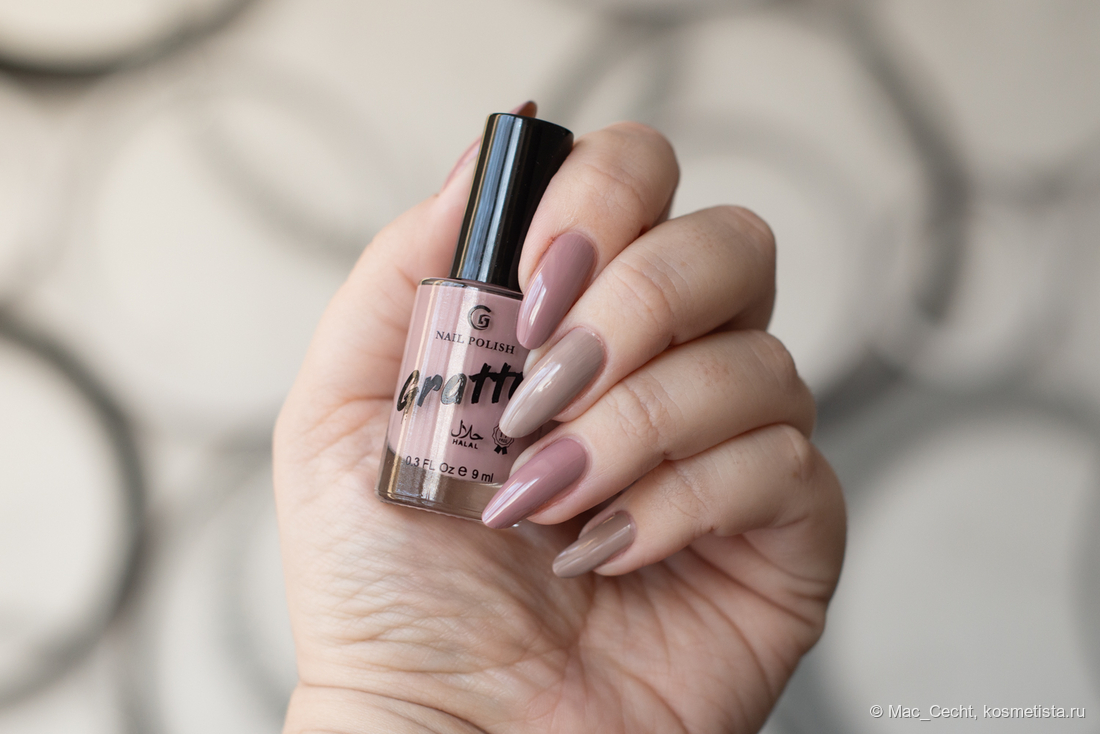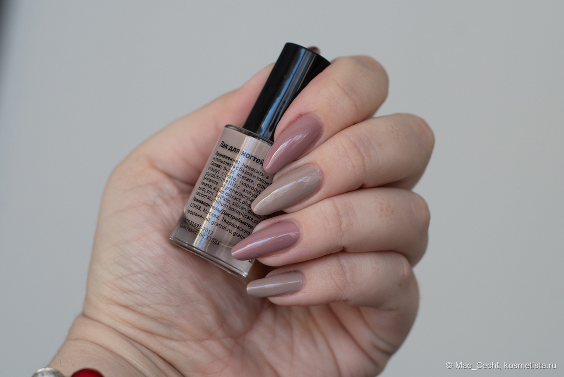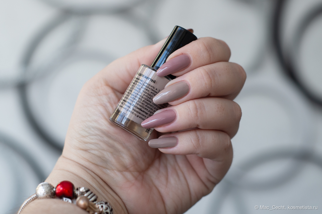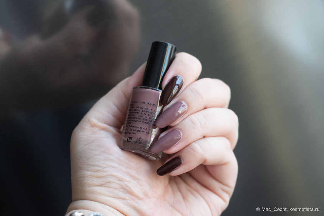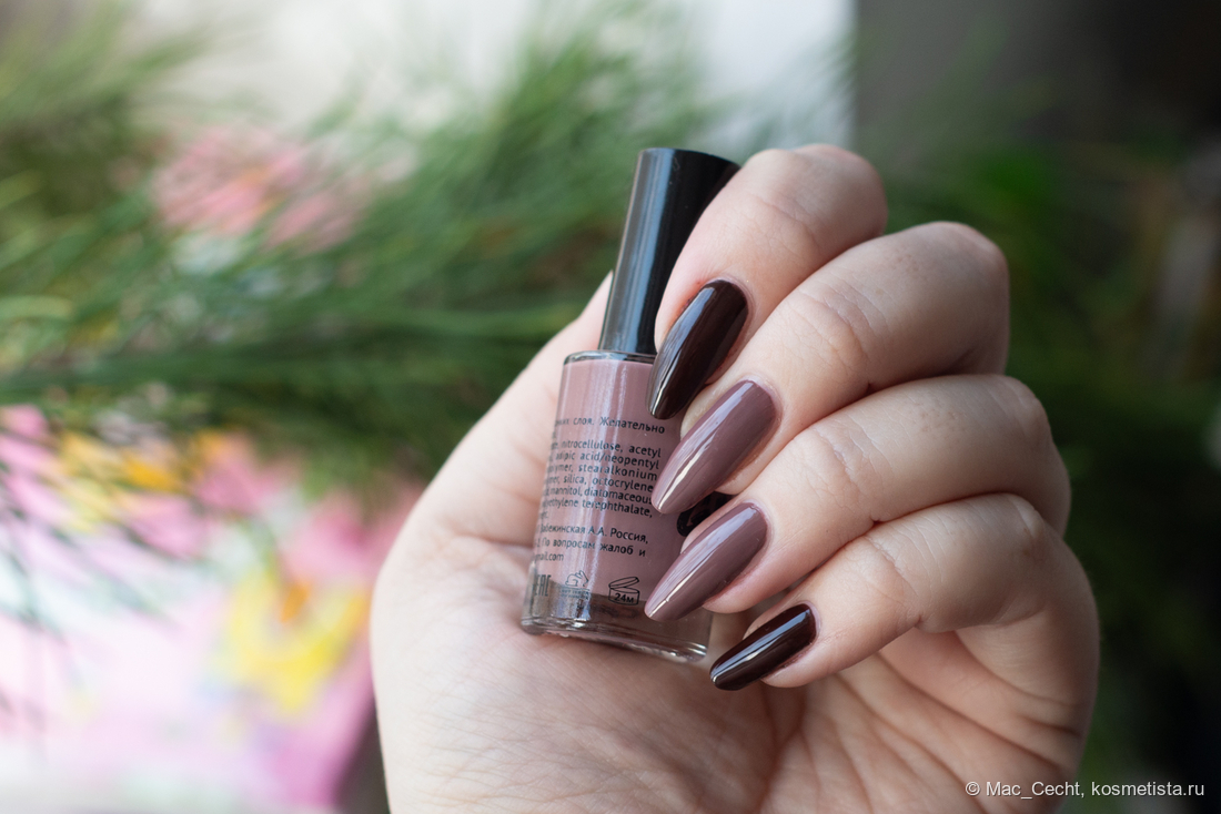 Mocha марка описывает как «пепельно-коричневый (теплый какао)». Теплый — думаю, про температуру напитка, а не лака, потому что он однозначно холодный. По цвету — да, какао с активной розовинкой.