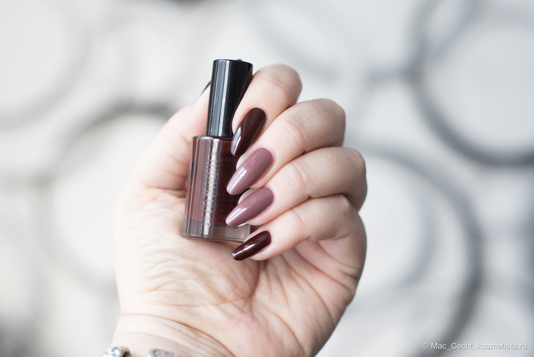 Вся коллекция — это холодные лаки. Если брать настоящий кофе, то только черный холодного цвета, а всякие рафы, латте и прочие — с теплинкой, но тут однозначно холодные цвета. Плюс не только околокоричневые, а и сероватые, и с розовинкой тоже.