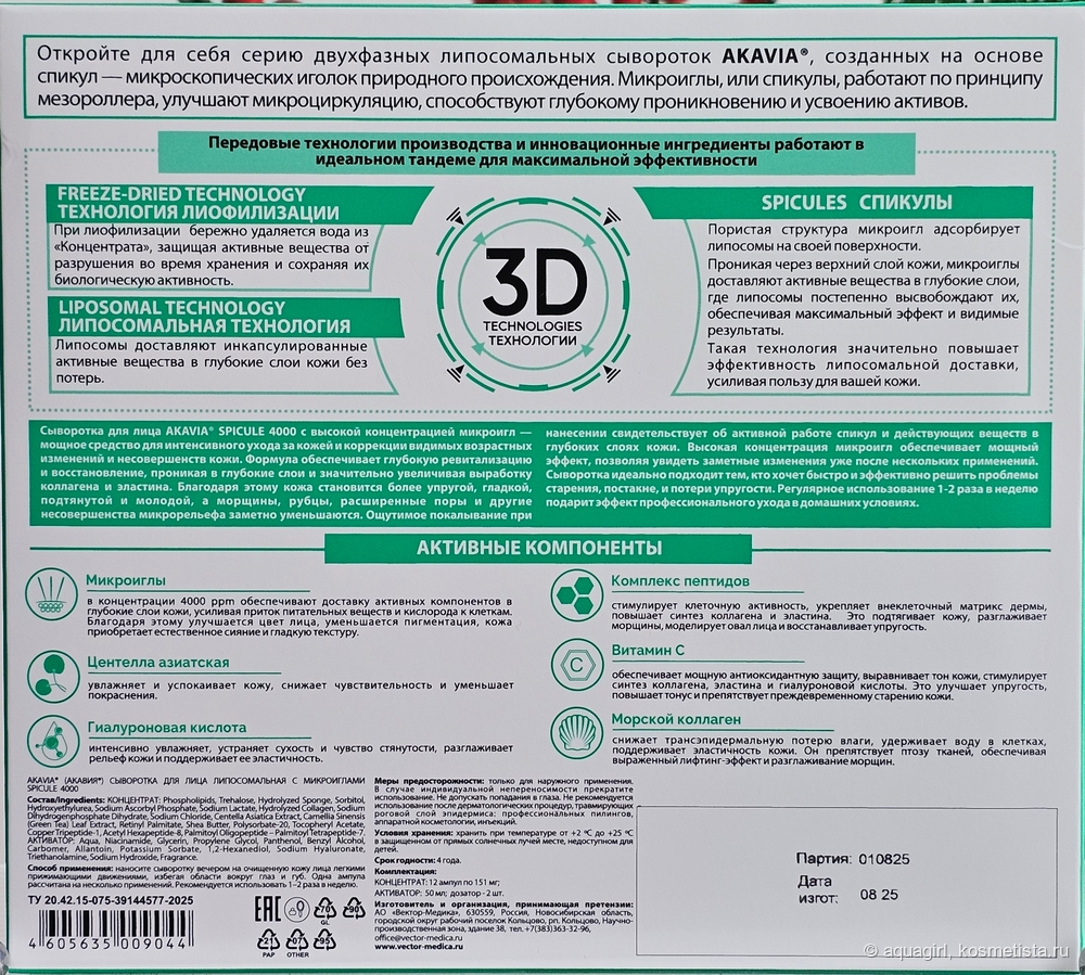 Akavia Spicule 4000 — инновационная сыворотка для лица с высокой концентрацией микроигл, созданная для интенсивного ухода и коррекции возрастных изменений.