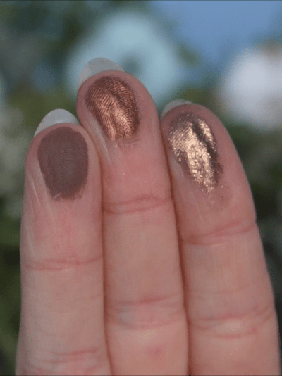 - 01 — профиль оттенка «Приданое Невесты» — старинная латунь. Оттенок, который рекомендую наносить пальцем, чтоб сохранить сияние и минимизировать его темную базу.